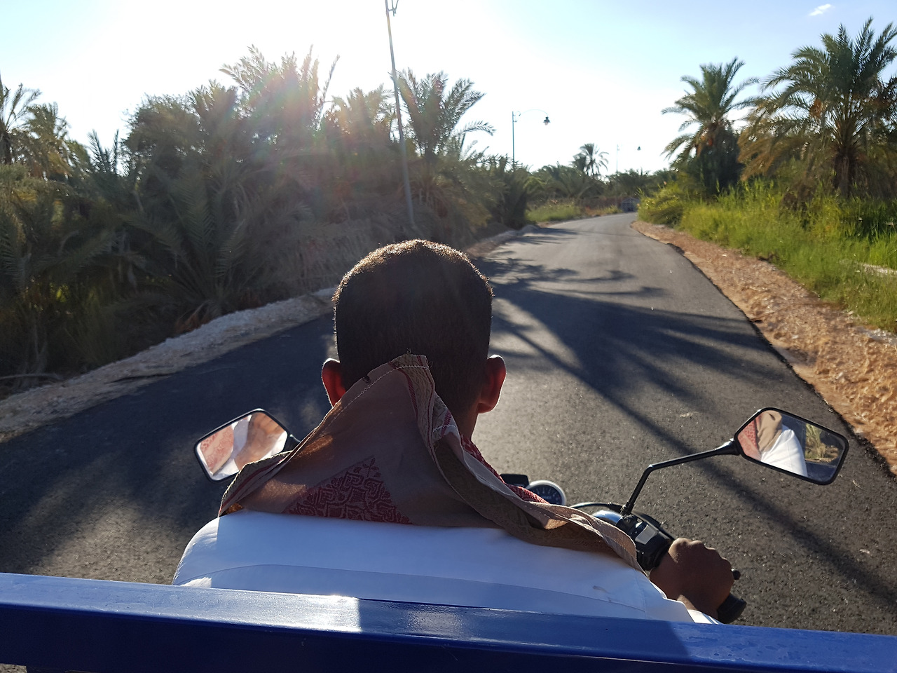 모함메드는 열 살 때부터 15년간 당나귀 택시를 몰았다. 그렇게 돈을 모아 장만한 것이 지금 우리가 타고 있는 오토바이 택시였던 것이다. 그는 시와 마을 토박이로 여행객들은 모르는 멋진 장소들을 많이 알고 있다고 했다. 그리고 이제는 당나귀를 몰 때 보다 더 먼 곳까지 빠르게 이동할 수 있으니 우리가 원한다면 해 질 녘 마을 근처에 있는 소금 호수에 데려가 주겠다고도 했다. 가격은 수영도 하고 작은 모닥불을 만들어 차도 끓여 주는 것 까지 포함해 1인당 40파운드(약 2,400원). 이 예산으로 그런 활동이 가능한 것일까 의문이 피어오르기 시작했지만 일단 가보자라는 생각으로 약속을 잡았다. 모함메드는 온천에서 놀고 있으면 4시 반쯤 다시 데리러 오겠다는 말을 남긴 채 유유히 떠나갔다.