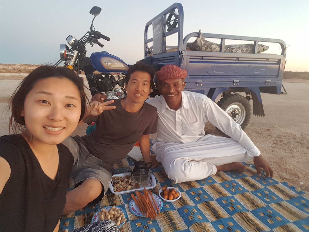 우리 세 사람은 해가 완전히 질 때까지 여유롭게 소금 호수 곁에 앉아 이런저런 이야기들을 나누었다. 모함메드는 돈을 떠나서 우리와 같은 여행객들에게 마을 구석구석을 소개해주는 일을 진심으로 즐기는 듯했다. 나는 그의 진심 어린 태도에 잠시나마 의심의 눈길을 가졌던 나 자신이 부끄러워졌다. 그리고 사막 한가운데서 이렇게 좋은 친구를 만나게 된 것에 감사했다.