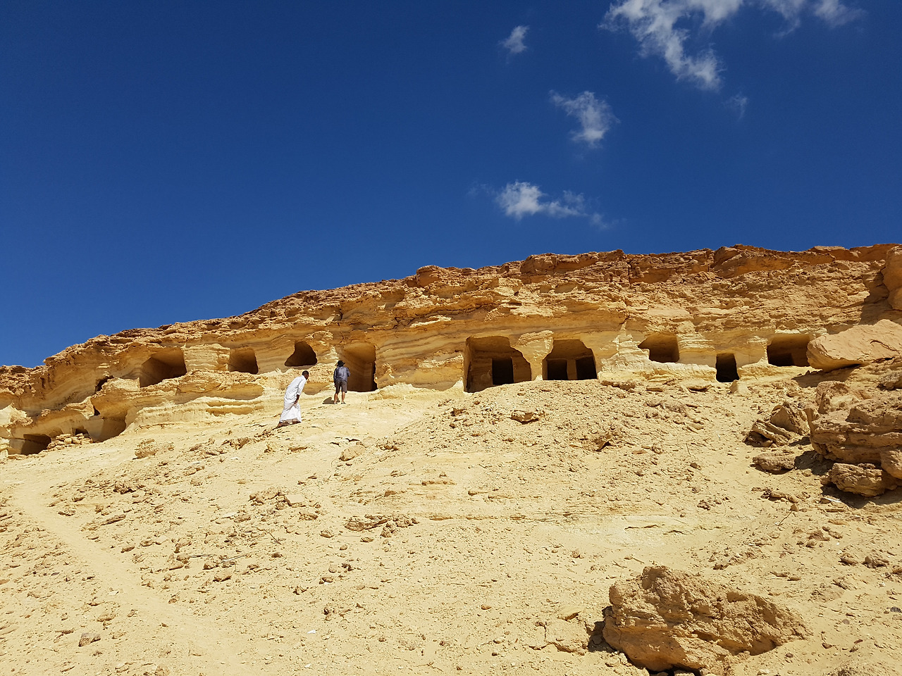 오토바이는 하루 종일 우리가 원하는 곳에 멈추었다, 원하는 곳으로 달려갔다. 사막의 노오란 모래들로 가득한 유적에서 아주 오래전 사람들의 무덤을 만나기도 했다. 모함메드는 이곳에 묻혔던 사람들이 귀족이었을 것이라고 이야기했다. 거대한 자연석의 속을 파내 동굴처럼 만든 무덤은 마치 다세대 주택 같아 보였다. 모래 언덕을 올라 가까이에서 텅 빈 무덤 속을 살펴본 뒤 내려가려는데 모함메드가 따로 갈 곳이 있다며 후미진 곳으로 우리를 데리고 갔다.