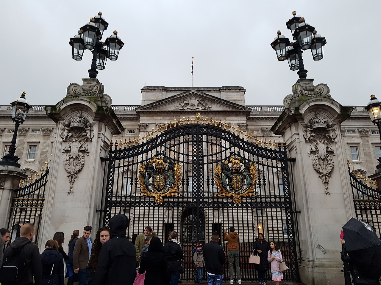 버킹엄 궁전에는 영국의 여왕이 살고 있다. 그래서 늘 문이 닫혀 있는데, 여왕이 휴가를 떠나는 기간에는 일반인들도 관람을 할 수 있게 개방이 된다. 궁전 꼭대기에 위치한 깃발은 현재 여왕이 궁에 있는지 외출 중인지를 보여주는 표식이다. 우리가 갔을 때는 영국 국기가 걸려 있었고 그것은 여왕이 궁에 없다는 것을 의미했다. 만약 여왕이 궁에 있다면 왕실기가 걸리게 된다.