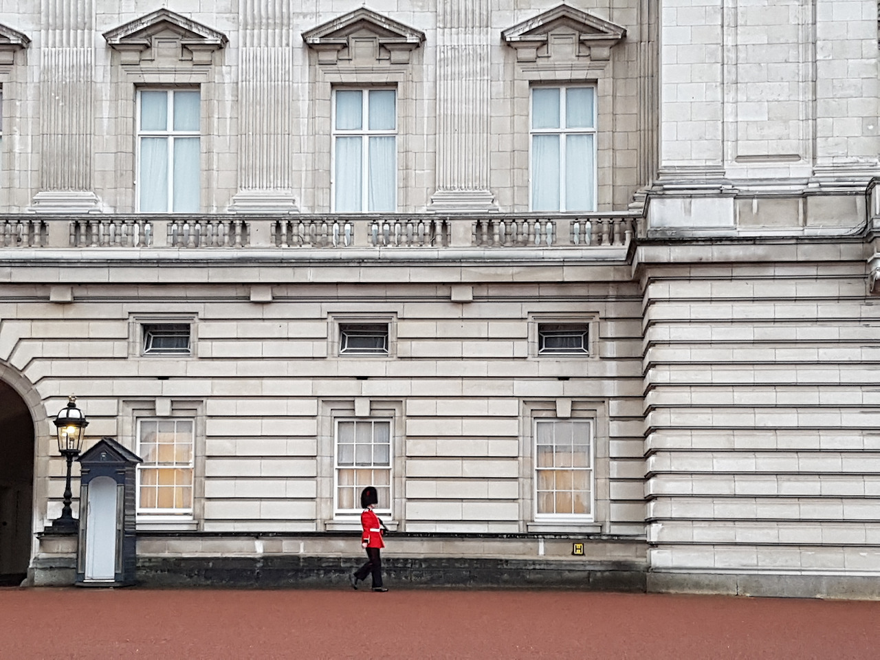 아쉽게도 근위병 교대식은 볼 수 없었지만 특이한 발걸음으로 궁 주변을 걸어 다니는 근위병들은 쉽게 볼 수 있었다. 각 잡힌 걸음걸이와 깊게 눌러쓴 길고 풍성한 털모자 그리고 붉은 슈트까지. 버킹엄 궁전과 그리고 우중충한 런던의 날씨와 너무나도 잘 어울리는 모습이었다.