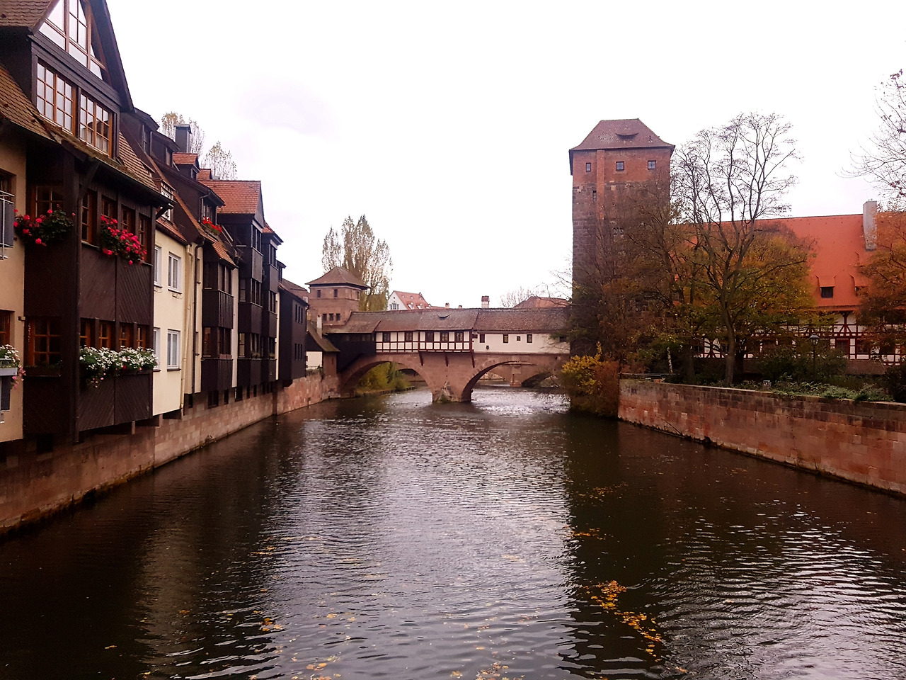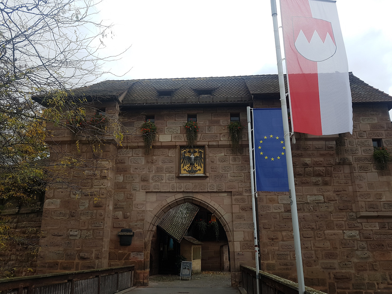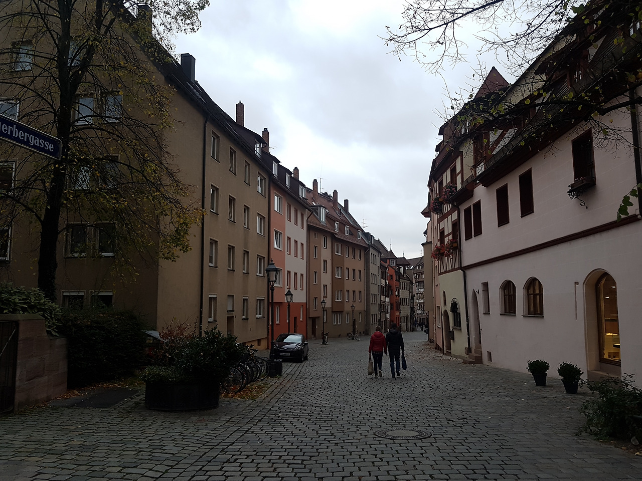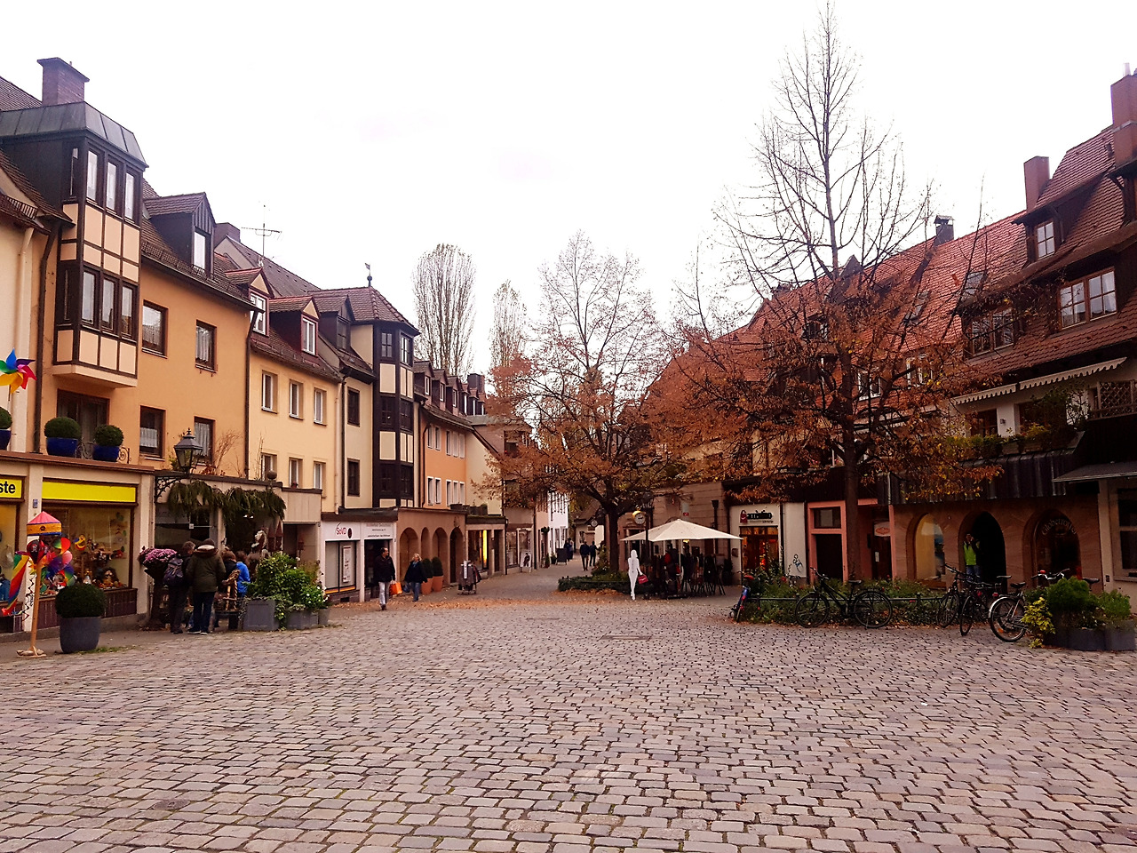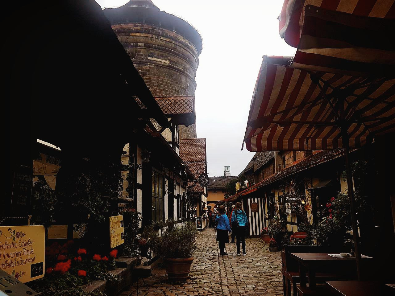 잘 먹고 푹 쉬고 에너지를 비축한 다음날, 느지막이 일어나 동네 구경에 나섰다. 뉘른베르크는 독일 남동부 바이에른주에 위치한 규모가 꽤 큰 도시이다. 하지만 옛 모습이 잘 남아있어 그런지 포근하고 아늑한 느낌이 들었다. 낙엽이 오소소 떨어진 돌길을 따라 성문 안으로 걸어 들어가니 작은 상점들이 옹기종이 모여있는 것이 보였다.