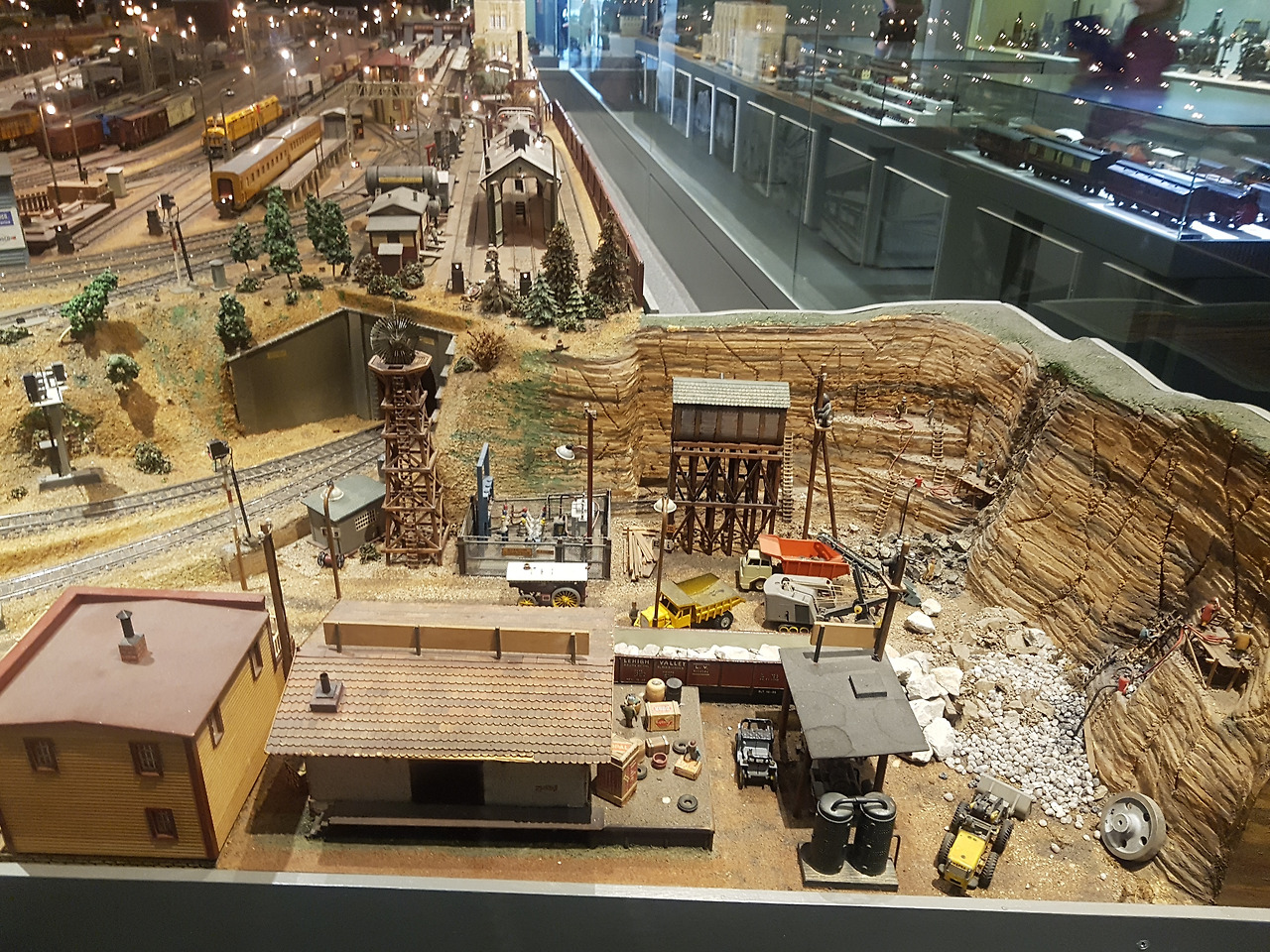 익숙한 바비 인형이 전시되어 있는 4층을 지나니 거대한 레일과 기차들이 나타났다. 플랫폼이며 가로등 하나까지 섬세하게 만들어져 한참을 넋 놓고 바라봤다. 이곳은 나보다 남편이 훨씬 신나서 구경했던 곳이다. 채석장에서 채취한 돌들을 기차에 싣고 바로 이동하도록 꾸며져 있었는데, 그곳에도 역시나 디테일이 장난 아니었다.