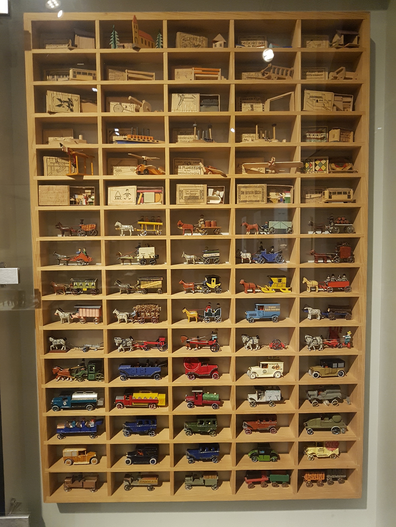 벽면 한쪽에는 이런 성냥갑 세트들과 그것과 크기가 비슷한 탈것 위주의 장난감이 빼곡히 진열되어 있었다. 보자마자 순간 통째로 우리 집 거실에 가져다 놓고 싶은 충동에 휩싸였다. 나 아닌 누구라도 이런 걸 본다면 그런 생각을 했을 것이다.