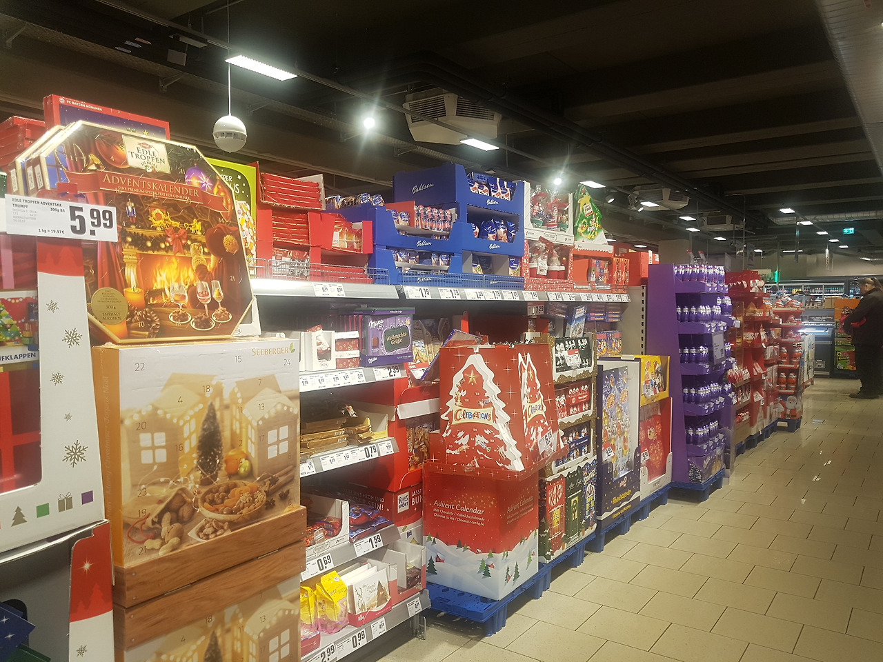 그리고 한켠에는 달콤한 것들을 반짝반짝 예쁜 포장지로 장식해, 장 보러 온 사람들을 무지막지하게 현혹하고 있는 그런 코너가 있었다. 바로 할로윈보다 더 많은 지분을 차지하고 있는 크리스마스 초콜릿 코너였다. 상상하던 대로 역시 이곳엔 슬금슬금 크리스마스가 시작되어 있었던 것이다.