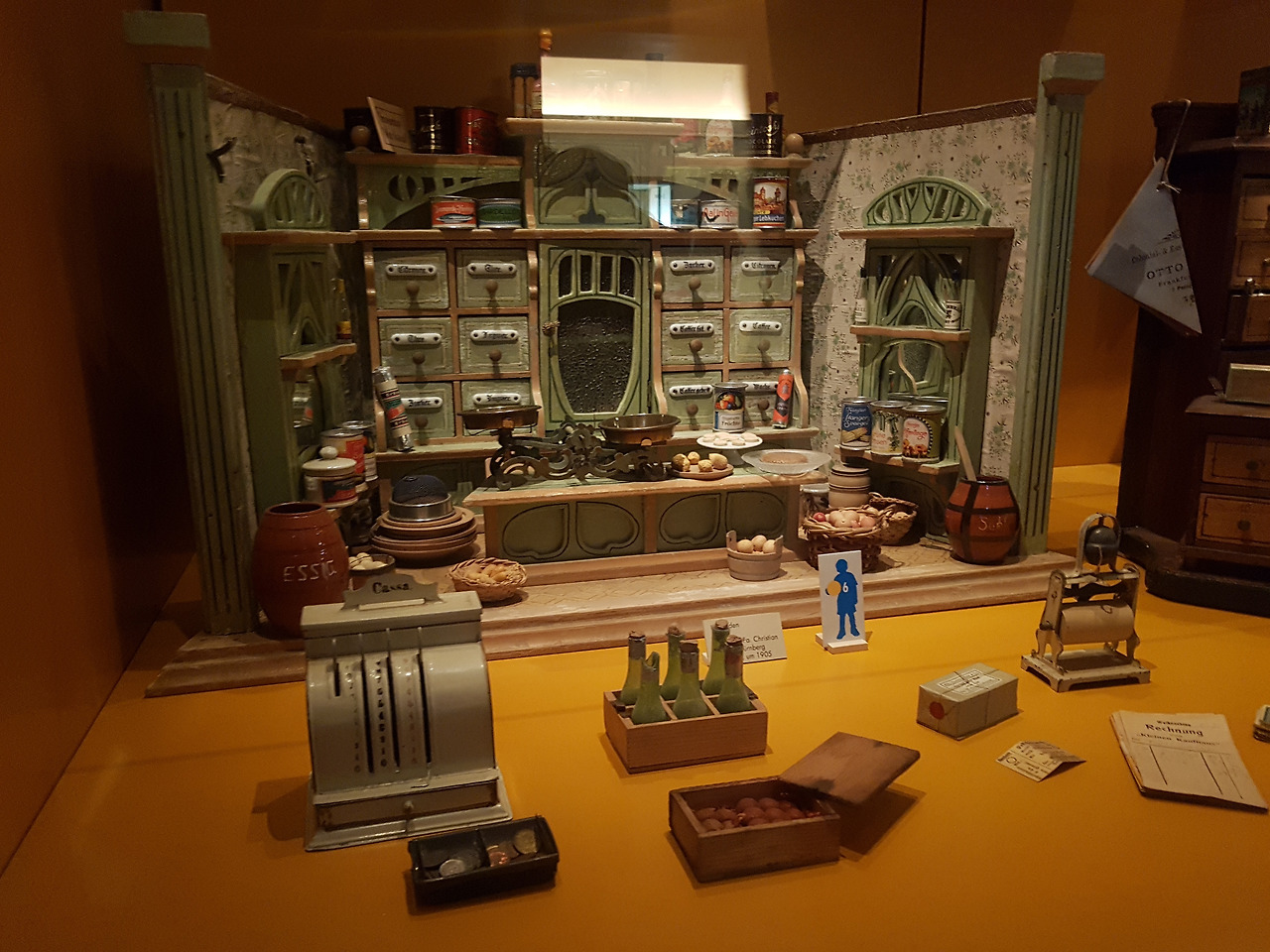 2층으로 올라가니 여기는 상상을 초월하는 인형의 집들이 가득했다. 어린이들이 가지고 놀기 위해 만들어졌다기보다 관상용으로 만들어진 것 같다는 생각이 들 정도로 퀄리티가 어마무시했다. 어린 시절의 로망을 10톤 트럭으로 콸콸 부어 놓은 듯한 비주얼에 나는 거짓말을 살짝 보태 침까지 흘리며 구경했다. 보이는가, 계산을 담당하는 금고 동전통 안의 작은 동전들이! 디테일이 정말 끝도 없다.