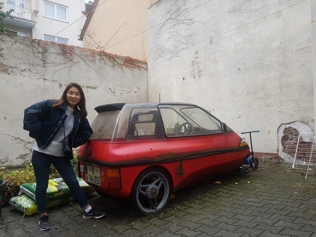 뉘른베르크에 도착하자마자 우리는 지하철을 타고 도심으로 향했다. 창밖으로 구리구리한 유럽의 날씨가 흘러갔다. 근데 이상했다. 분명 영국에서의 우중충함은 센치한 감성으로 느껴졌는데, 독일에서의 우중충함은 왜 우울하게 느껴지는 것일까. '센트럴 역 Central Staion'에서 400m 떨어진 곳에 위치한 숙소의 마당도 뭔가 심상치 않아 보였다. 건물은 붉은 벽돌로 지어진 오래된 아파트였는데, 마당에 여기저기 구멍 나고 녹슨 쪼꼬미 자동차가 세워져 있었다. 칙칙한 날씨에 뭔가 사연을 더하는 듯한 비주얼, 뭔가 비밀을 품고 있는 것 같은 오묘한 분위기가 흘렀다. 뭘까. 뭐지, 이곳?!