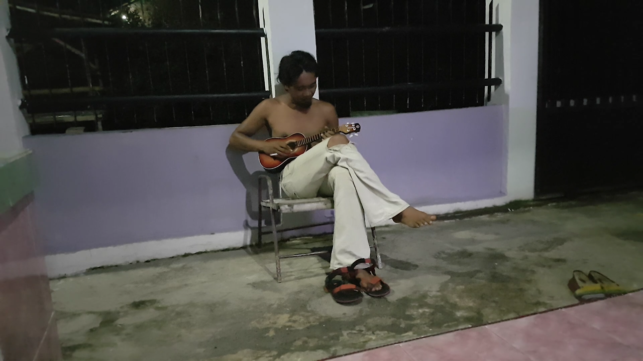 숙소로 돌아와 샤워를 하고 긴 하루의 마무리를 하려는데 너무 더웠다. 그래서 거실로 나갔더니 도마뱀 7마리 정도가 벽을 타고 있었다. 넋을 놓고 구경하는데 베니가 나타났다. 손에 우쿨렐레를 들고. 나도 한 때 열심히 치던 악기였기 때문에, 베니에게 잘 치냐고 넌지시 물어봤고 그는 연습 중이라고 했다. 그래서 '나도 칠 줄 안다'라고 했더니, 신기한 듯 쳐보라고 악기를 건넸다. 나는 그냥 알고 있는 코드로 몇 가지 스트록을 섞어 연주 아닌 연주를 했다. 그는 재밌다며 폰을 가져와 나를 찍어댔다. 그래서 나도 폰을 가져와 찍을 테니 한곡 연주해달라고 부탁했다. 베니는 연습 중인 멋진 곡의 일부를 들려주었다. 낯선 시골마을 바뉴왕이에서의 밤이 그렇게 깊어 갔다.
