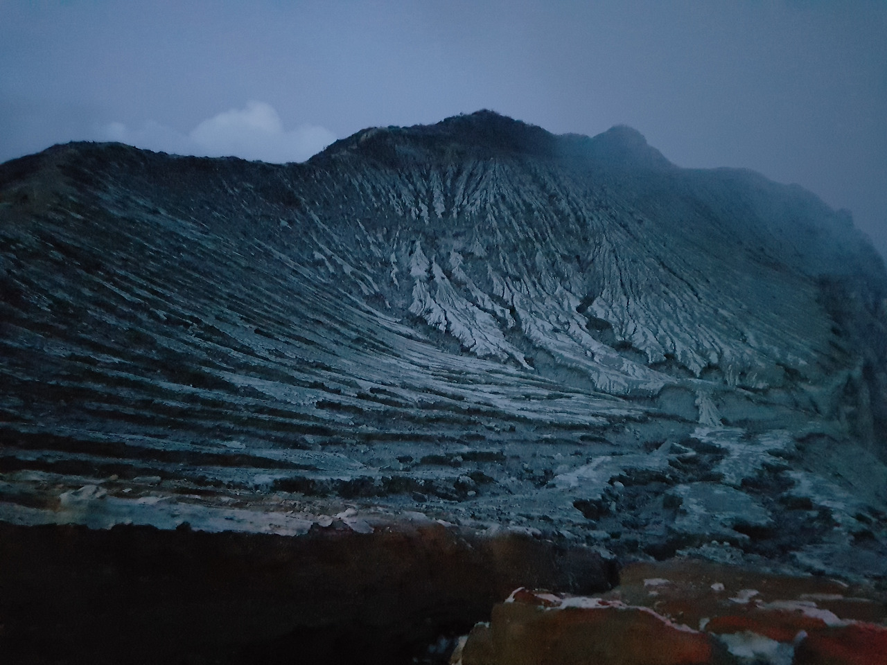 이제 해가 떠오를 때까지 기다리는 일만 남았다. 고도가 2600m 정도 되는 데다 새벽 시간이라 기온이 매우 낮았다. 추위와 졸음을 애써 물려내며 바위에 기대 1시간쯤을 보냈을까, 지난밤 화산이 덮고 잠든 어둠을 해의 손길이 조금씩 걷어내기 시작했다. 드러난 이젠의 어깨에는 세월이 심어 둔 깊은 주름이 가득했다. 왠지 우리네 아버지들의 어깨 같았다.