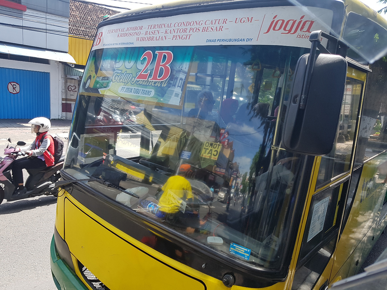 족자카르타에는 우리가 들렀던 다른 도시들과는 달리 '트랜스 족자'라는 공영 버스가 있었다. 가격도 3500루피(320원)로 굉장히 저렴하다. 이 가격에 환승도 포함이니, 우리 같은 여행객들에게는 더할 나위 없이 좋은 교통수단이다. 우리는 우선 숙소 근처의 말리오보로 정류장으로 간 뒤 안내원에게 보로부두르에 가려면 몇 번을 타야 하는지를 물었다. '3A를 타고 세 정거장 가서 2B로 갈아타세요.' 친절한 안내를 따라 에어컨이 나오는 시원한 트랜스 족자에 몸을 실었다. 1시간 반 정도를 달렸을까, 사원에 가기 위한 중간 기착지인 좀보 터미널에 도착했다.