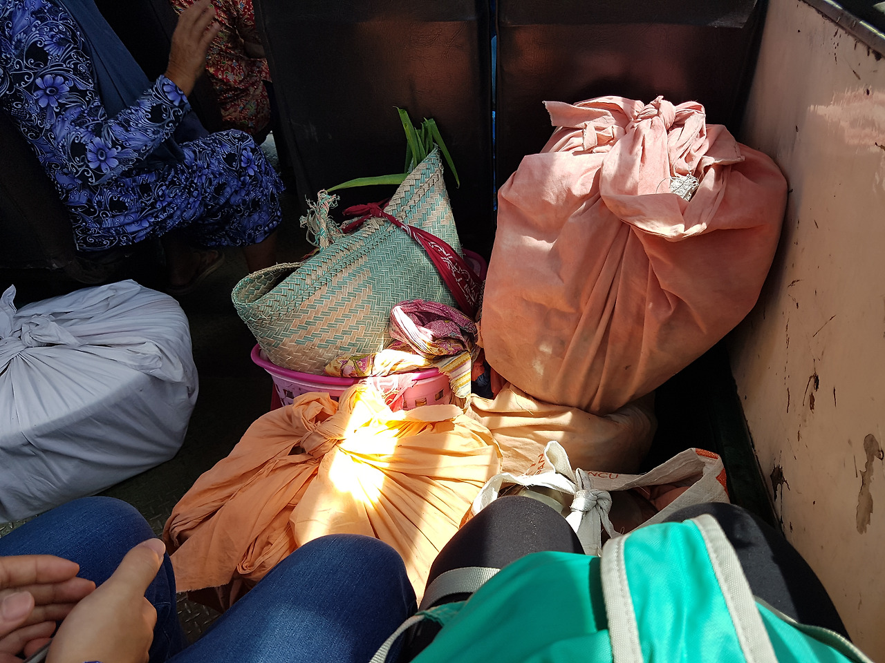 내리자마자 역시나 기사들이 따라붙었다. 우리는 신경도 쓰지 않고 터미널 안쪽으로 걸어 들어가 미리 알아보고 온 허름한 버스 앞에 섰다. 버스 기사가 요금을 설명해주고, 우릴 차에 태웠다. 뜨거운 태양이 버스 창을 뚫고 그대로 내리쬤다. 이곳은 분명 우기라는데, 아직 한 번도 비를 만나지 못했다. 어딜 가나 우리가 지나가고 나면 그때야 비가 온다. 덕분에 더위는 극심하지만 이 또한 감사할 일이다. 버스는 한참을 달리며 다양한 손님들을 태웠다. 잊을만하면 한 번씩 올라타는 방랑 뮤지션과 한가득 장을 봐가지고 집에 가시는 할머님들. 모두 한없이 정겹다.