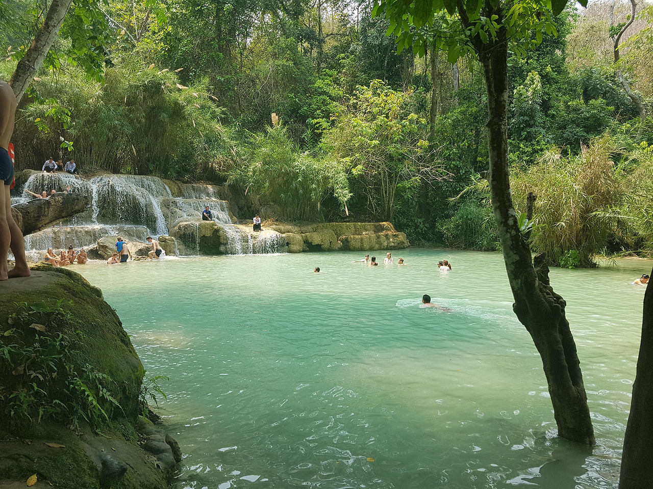 꽝시 폭포에 오니 비로소 방비엥에서 봤던 블루라군은 사기에 가까웠다는 것을 깨닫게 되었다. 푸르른 나무와 그 사이로 펼쳐진 에메랄드빛 라군, 정말 요정이 나와도 하나 이상할 게 없는 풍경이었다. 게다가 이 아름다움은 한 곳에서 끝나는 것이 아니라 서로 다른 대여섯 개의 포인트들에서 즐길 수 있었다. 물줄기를 따라 쭉 올라가다 보니 폭포의 근원이 힘차게 물줄기를 떨구고 있었다. 나는 이제 내려가면서 라군마다 한 번씩 몸을 담그면 되겠다고 생각했지만 남편 생각은 달랐다. 저 폭포의 위까지 올라가 보자! 진짜 멋진 것은 그곳에 있다는 말이 제법 그럴싸하게 들렸기 때문에 나는 흔쾌히 고난의 길에 들어서고야 말았다.