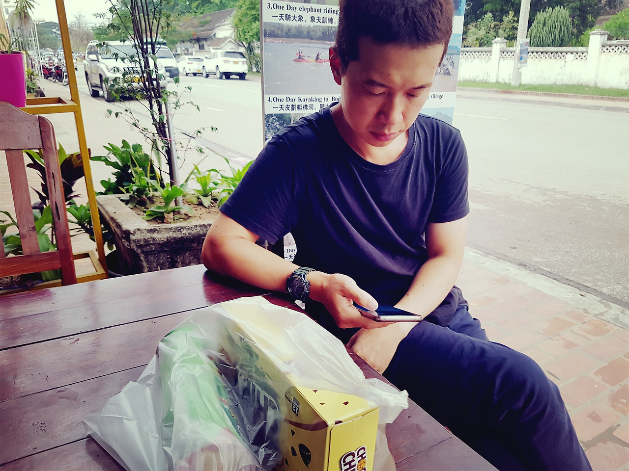 우리는 송크란을 치앙마이에서 즐길 예정이라 그곳까지 가는 슬리핑 버스 예약을 위해 여행사에 들렀다. 하지만 새해 전날 치앙마이 직행 국제 버스표는 이미 매진이 된 상태였다. 그래도 가긴 가야 하기에 선택한 차선책. 밤 7시에 루앙프라방에서 출발, 12시간을 달려 라오스 국경 터미널에 일단 내린다. 거기서 10분 정도 툭툭을 타고 라오스 출국장으로 간다. 출국 심사를 거치고 거기서 또 10분간 공용 버스를 타고 태국 입국장으로 간다. 입국 심사를 마치고 태국 버스 터미널로 또 툭툭을 타고 10분간 간다. 그리고 거기서 6시간짜리 고속버스를 타면 꿈에 그리던 치앙마이에 도착을 하게 되는 것이다. 약 20시간이 걸리는 대장정 되시겠다.