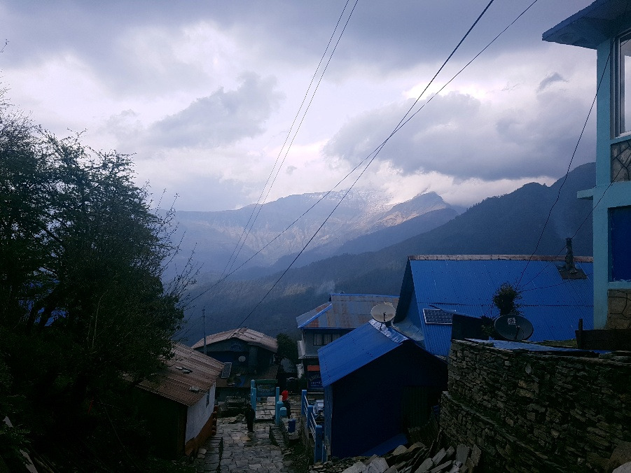 오늘 묵게 된 숙소는 총 4층으로 규모가 굉장히 크다. 1층에는 책과 과자, 옷 등을 파는 잡화점도 있다. 2층은 롯지 식당인데 한켠에 따뜻한 나무 난로가 놓여있어 포근함을 느낄 수 있다. 방에 짐을 풀고 내려오니 이미 많은 사람들이 난로 곁에 앉아 쉬고 있었다. 우리도 한자리 차지하고 앉아 불을 쬈다. 고산지대는 불편할 것이라 생각했는데, 뜨거운 물 샤워도 맘껏 할 수 있고 100루피를 내면 와이파이도 빵빵하게 쓸 수 있다는 사실이 놀라울 따름이다. 정말이지 네팔은 알면 알수록 대단한 나라다.