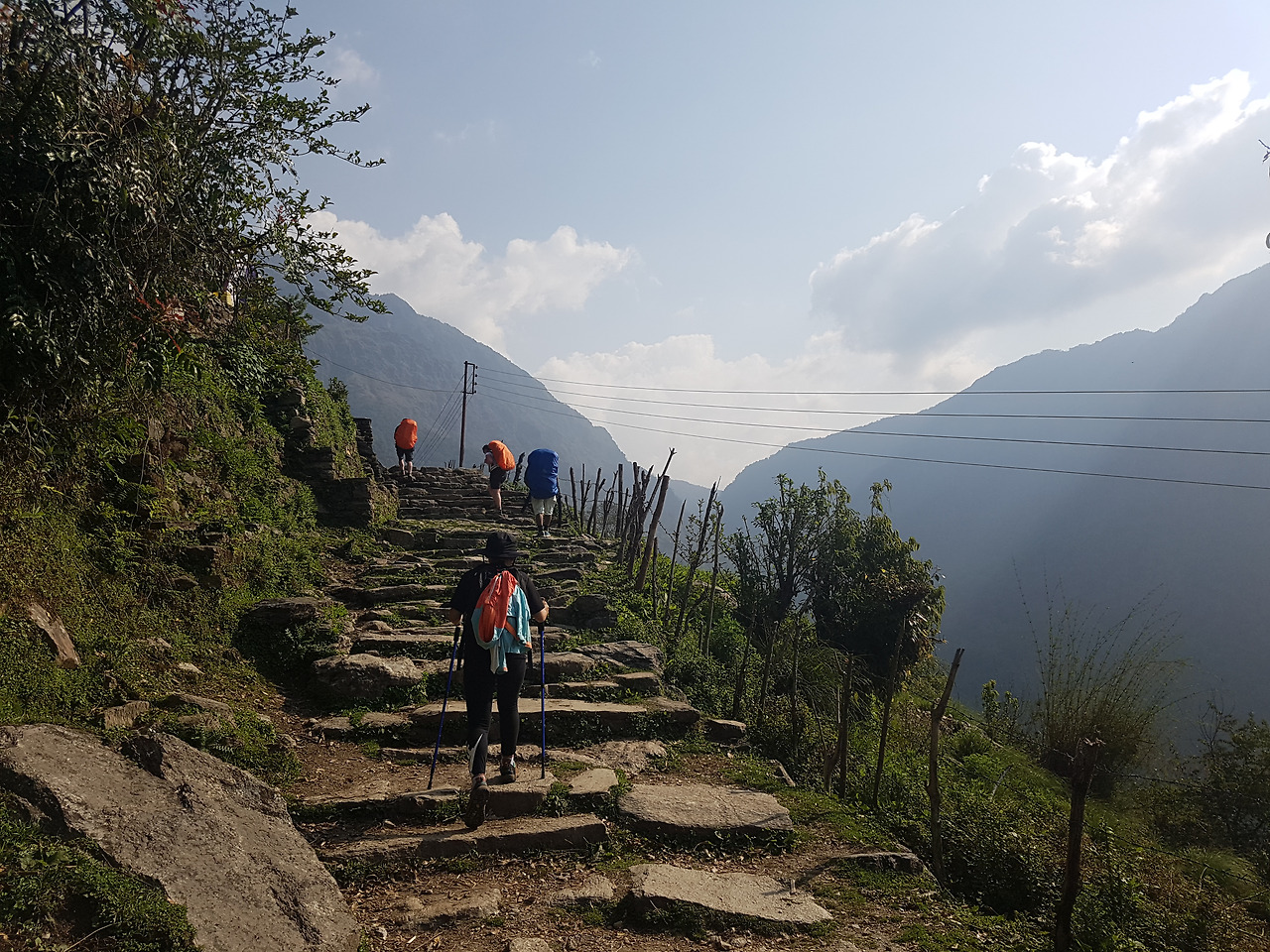 5월이 되면 히말라야는 매일매일 비가 내리는 몬순 시즌에 들어간다. 지금은 정오를 기점으로 보슬비가 내리는 수준이지만 7월이 되면 하늘에 구멍이 난 것처럼 비가 쏟아진다고 한다. 비를 맞으며 걷는 것이 때로는 운치 있는 일이겠지만 길이 평탄치 않은 이곳에서는 되도록이면 비를 피하는 것이 상책이다. 때문에 우리는 아침 7시 30분쯤 출발하여 4~5시간을 걸은 뒤 점심 전후로 다음 롯지에 들어가는 것을 목표로 삼았다.