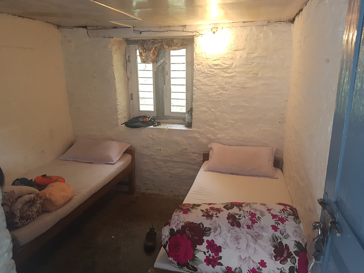 배고픔을 딛고 일어나 다시 3시간 정도를 걸으니 천둥소리와 흡사할 정도로 어마어마한 계곡물소리가 들렸다. 이 계곡 곁에 오늘 우리가 묵을 히말라야 롯지가 있다. 땀으로 흠뻑 젖은 채 가방을 내려놓고 단출한 나무 침대에 걸터앉았다. 계곡이 바로 옆에 있어서 그런지 방 안에서도 물소리가 크게 들려왔다. 다른 롯지보다 습도도 조금 높은 것 같았다. 그래도 더 이상 걷지 않아도 된다는 사실이 행복했다. 3,000m 가까이 올라왔으니 이제 뜨거운 물 샤워는 안되겠지라고 생각했는데 된다고 해서 한 번 더 행복. 상큼하게 씻고 나오니 높은 고도 때문에 으슬으슬 추위가 몰려왔다. 가져온 옷을 몇 겹씩 껴입고 물기를 말리기 위해 수건으로 감싼 머리 위에 그대로 털모자를 써버렸다. 그 모습을 본 남편은 내가 심슨 와이프 같다며 웃었다. 그래 오늘 고생했으니까 이런 것으로라도 웃으렴ㅋ