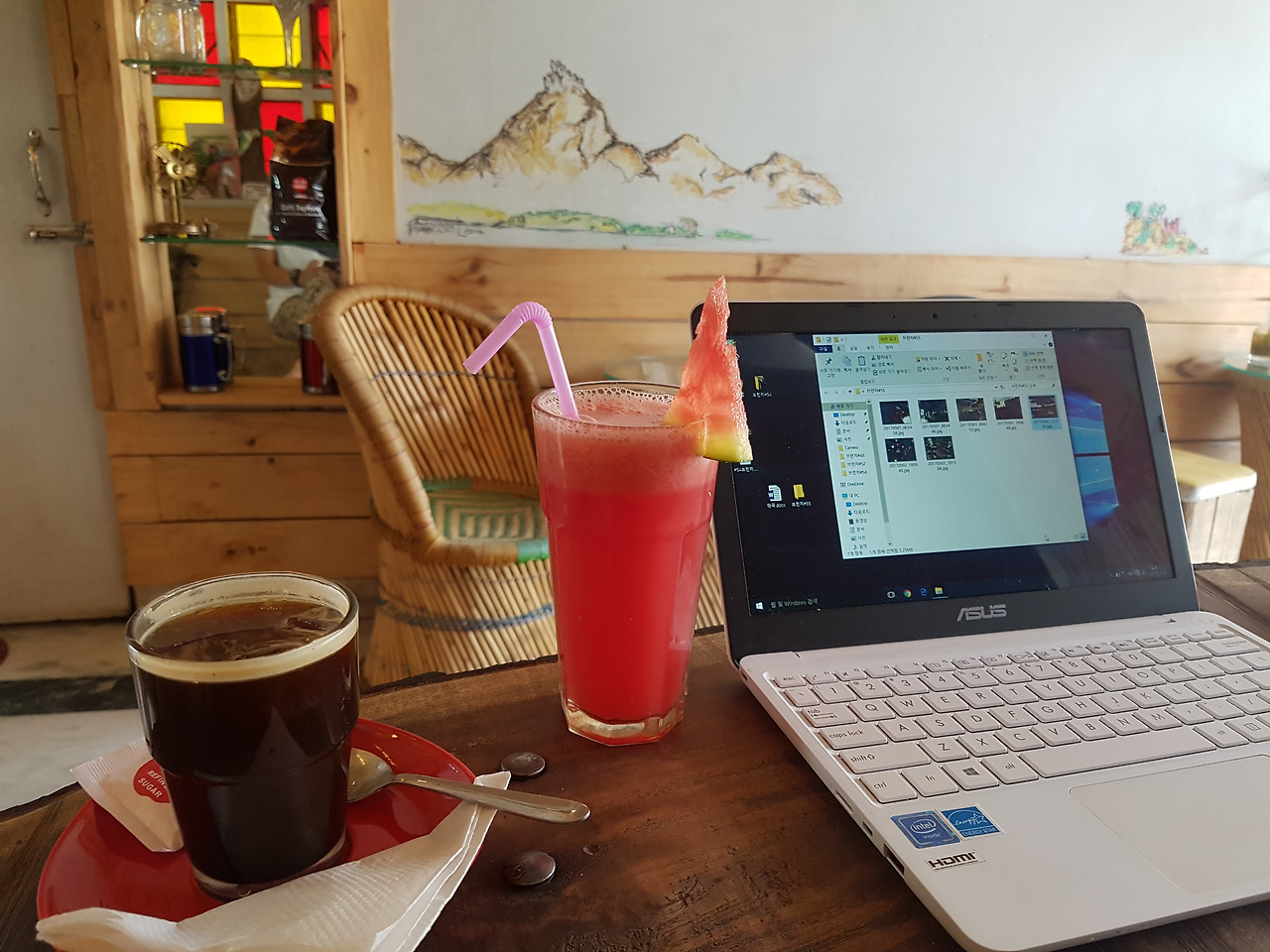 어제는 정말 순수한 게으름으로 방 안에서 하루를 홀랑 보냈다. 그로 인해 생성된 약간의 죄책감을 지우기 위해 오늘은 일찌감치 집을 나섰다. 그래 봐야 오후 2시지만 말이다. 그동안 지나다니며 다음에 한 번 가보자고 말만 했던 작은 카페에 들어갔다. 수박 주스와 커피 그리고 팬케이크를 주문해 간단히 점심을 먹고 글 쓰기에 돌입했다. 그렇게 2시간 정도 카페에서 몸을 식힌 뒤 뜨거운 태양 아래로 다시 길을 떠났다.