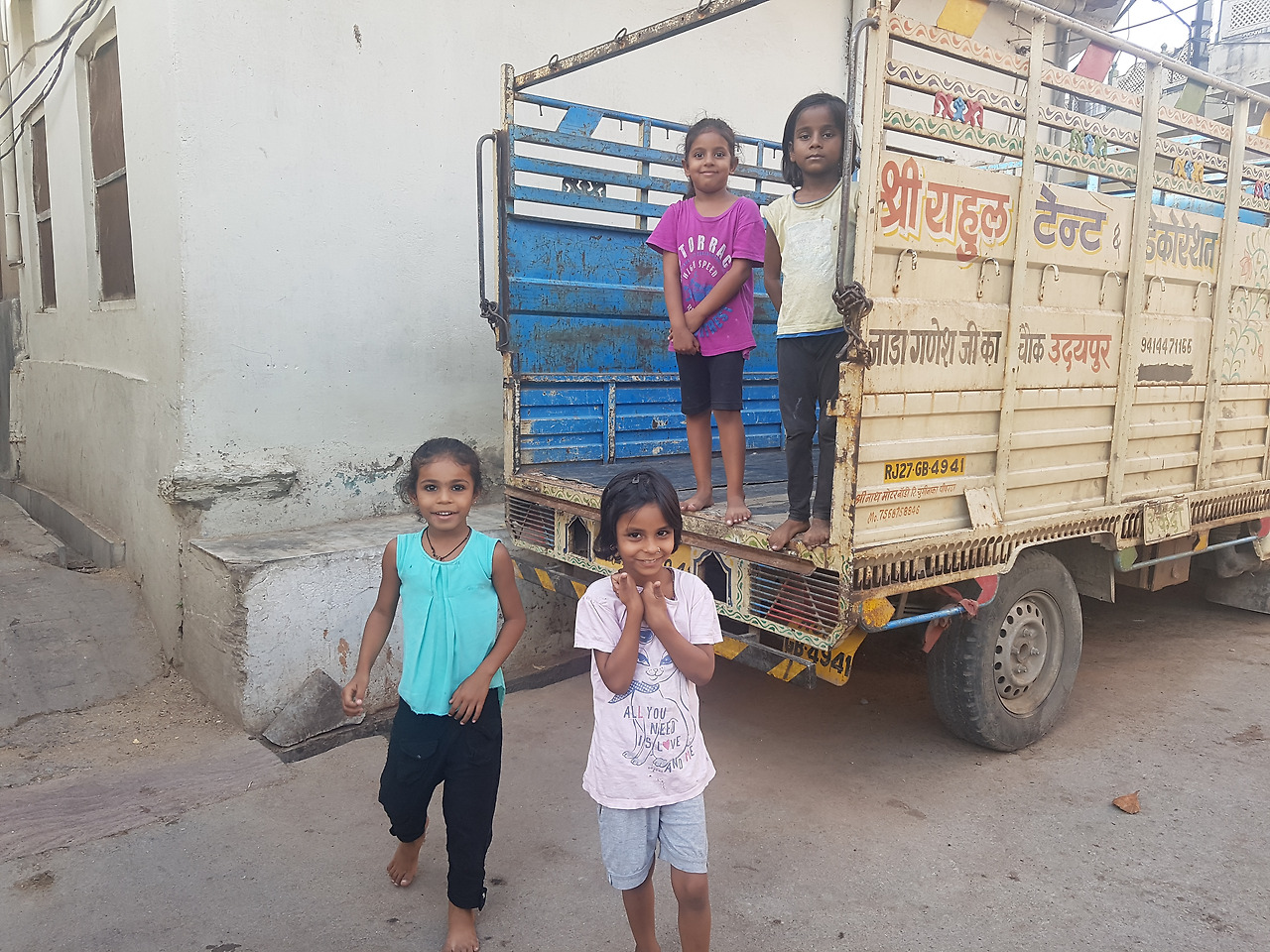 우다이푸르 라씨 골목에 흘러든지 일주일이 지났다. 이제 우리가 나타나면 동네 사람들이 하나둘 자연스레 인사를 해준다. 그것도 한국어로 '안녕하세요', '어디 가요?'라고. 이렇게 우리에게 인사를 건네는 무리 중 유독 귀여운 존재들이 있었으니, 바로 '고마워와 친구들'이다. 네 명의 어린 소녀들로 이루어진 이 무리는 매일 오후 4시쯤 동네 어귀에 세워진 트럭에 올라가 논다. 그때 우리가 지나가면 호기심 가득한 얼굴로 '안녕~'을 외치고 쪼르르 달려와 'My name is?'라고 이상한 질문을 던진다. 나중에 알고 보니 이름이 뭐냐고 묻고 싶었던 것. 그래서 내 이름을 말해주고 '니 이름은 뭐니?'라고 되물었을 때 그녀는 '고마워'라고 했다. 사실 '거마오'였는지 '고마오'였는지 정확히 알 수는 없었지만 '고마워'와 발음이 매우 유사해서 그냥 그렇게 외우기로 했다.