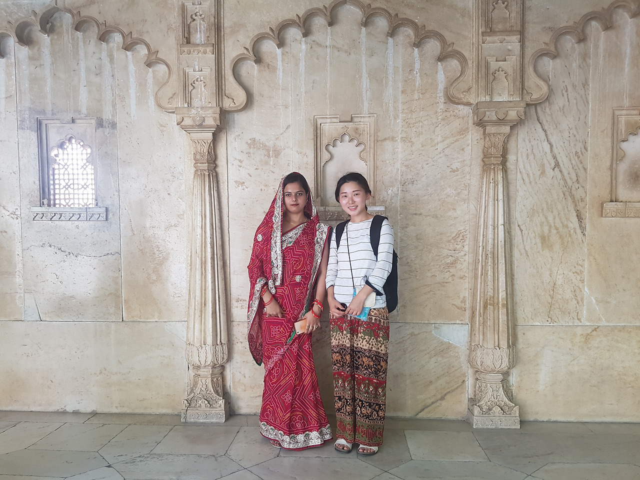 열심히 구석구석을 구경하며 돌아다니는데 신기한 차림새의 현지인들이 눈에 들어왔다. 보통 인도 여자들은 노출이 제한되어 있어 긴바지에 전통 의상인 사리를 두르고 다니는데, 그녀들은 길이도 짧은 원피스를 입은 것이다. 아마도 이곳보다 분위기가 자유롭다는 남쪽 지방에서 왔을 것이다. 거기서는 핫팬츠도 입고 다닌다는 얘기를 들은 적이 있다. 같은 인도인데 이렇게 분위기가 다르다니. 신기하다.