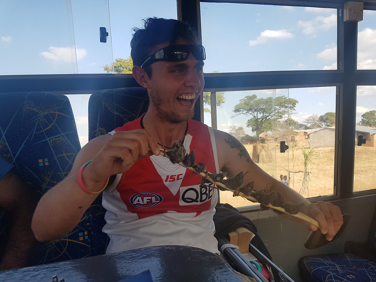 3시간 만에 트럭이 기적적으로 고쳐져 다시 출발! 차만 타고 가다 보니 다들 심심했는지 내기 한판이 벌어졌다. 제프가 구운 쥐 꼬치를 먹으면 린다가 5달러를 주기로 한 것이다. 딜이 성사되자마자 린다는 트럭을 세우고 길가에서 장사 중인 꼬마들에게 쥐 꼬치를 구매했다. 제프는 망설임 없이 꼬치에 끼워진 쥐 한 마리를 통째로 입안에 넣었다. 맛이 어떠냐고 다들 묻자 닭고기 맛이 난다고 태연하게 대답하는 제프. 모두들 이상한 고기에서는 왜 맨날 닭고기 맛이 나는 것이냐며 머리를 절레절레 흔들었다. 그렇게 제프는 5달러를 손에 쥐고 내기의 승자가 되었다.