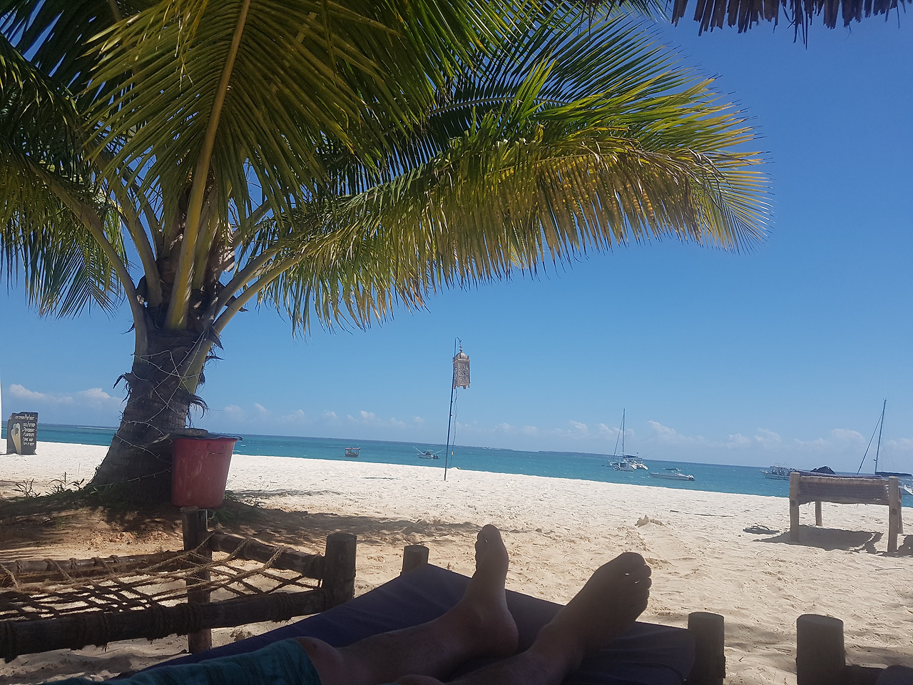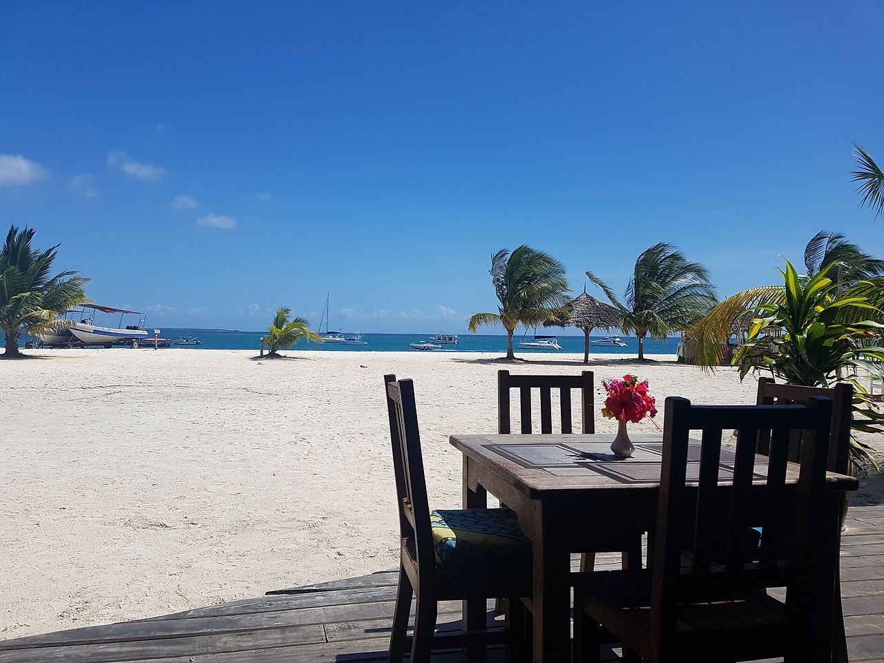예산이 많이 투입되게 생겼지만 이왕 온 거 후회 없이 즐겨 주고 가리라! 우리는 방에 짐을 풀자마자 수영복으로 환복을 마친 뒤 본격적으로 놀기 위해 해변으로 나갔다. 잔지바르 100% 즐기기 첫 번째 코스는 여유로운 점심식사로 시작한다. 하얀 모래사장과 파란 바다 그리고 푸르른 하늘을 애피타이저 삼아 볶음밥과 파스타를 먹고, 디저트로 신선한 열대 과일을 갈아 만든 주스 한잔 마셔주면 수영을 위한 에너지 충전 완료.