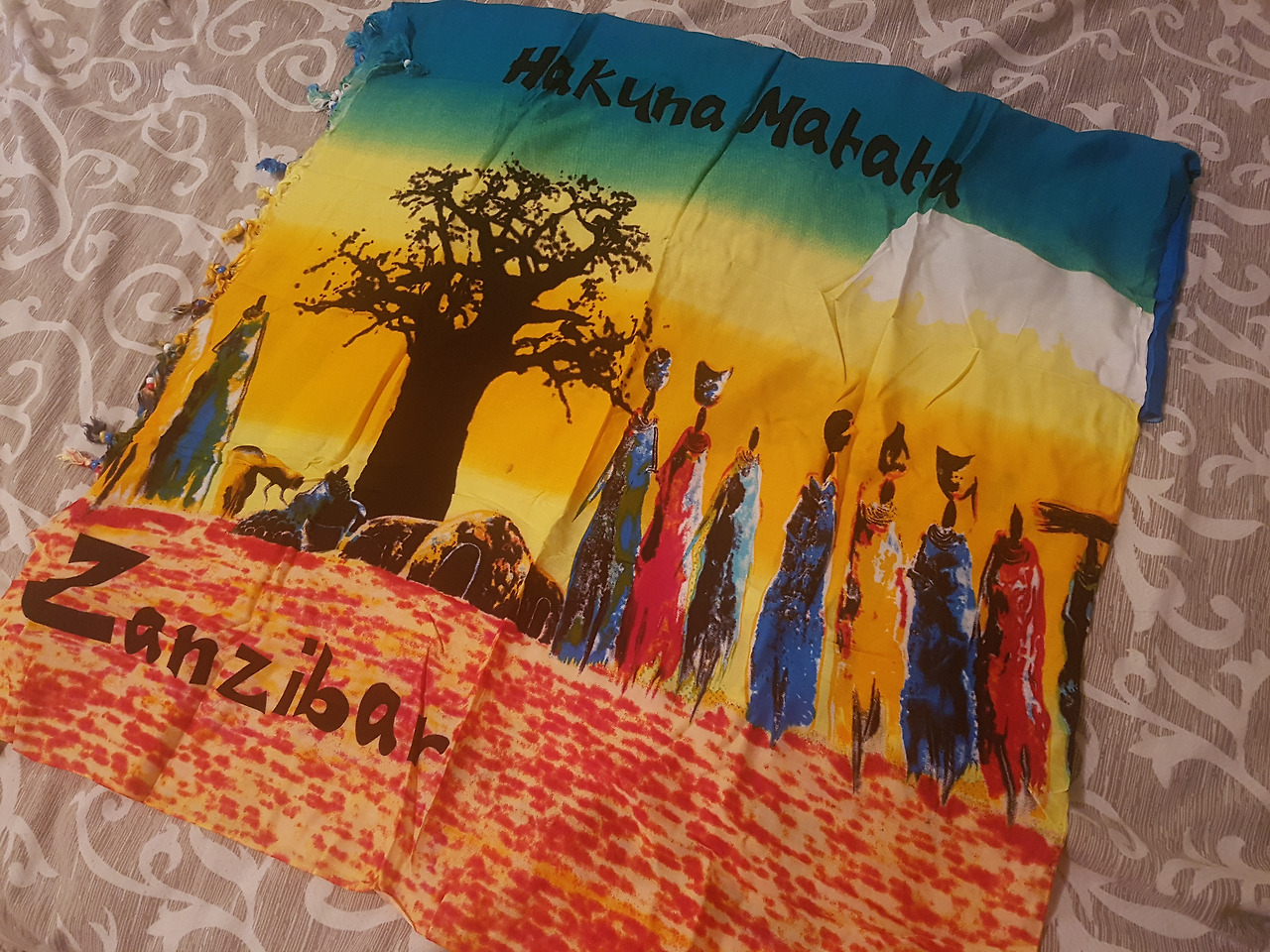 급히 오면서도 해변 간이 상점에서 하쿠나 마타타가 새겨진 사롱을 구입했다. 이렇게 소소한 기념품을 구입해보는 것도 잔지바르 100% 즐기기 중 하나. 부피가 작아 들고 다니다가 누군가에게 선물하기도 좋으니 특템이라고 부를 만하다. 알록달록한 것을 원체 좋아하는 나는 아프리카의 기념품들 앞에서 항상 이성을 잃는다. 그때마다 들어오는 남편의 단호한 저지. 하지만 이번만큼은 남편이 먼저 구매를 권했다. 아마 잔지바르의 아름다운 순간을 기억할 무언가를 갖고 싶었던 것 같다. 그런 의미에서 좋은 거래였다!
