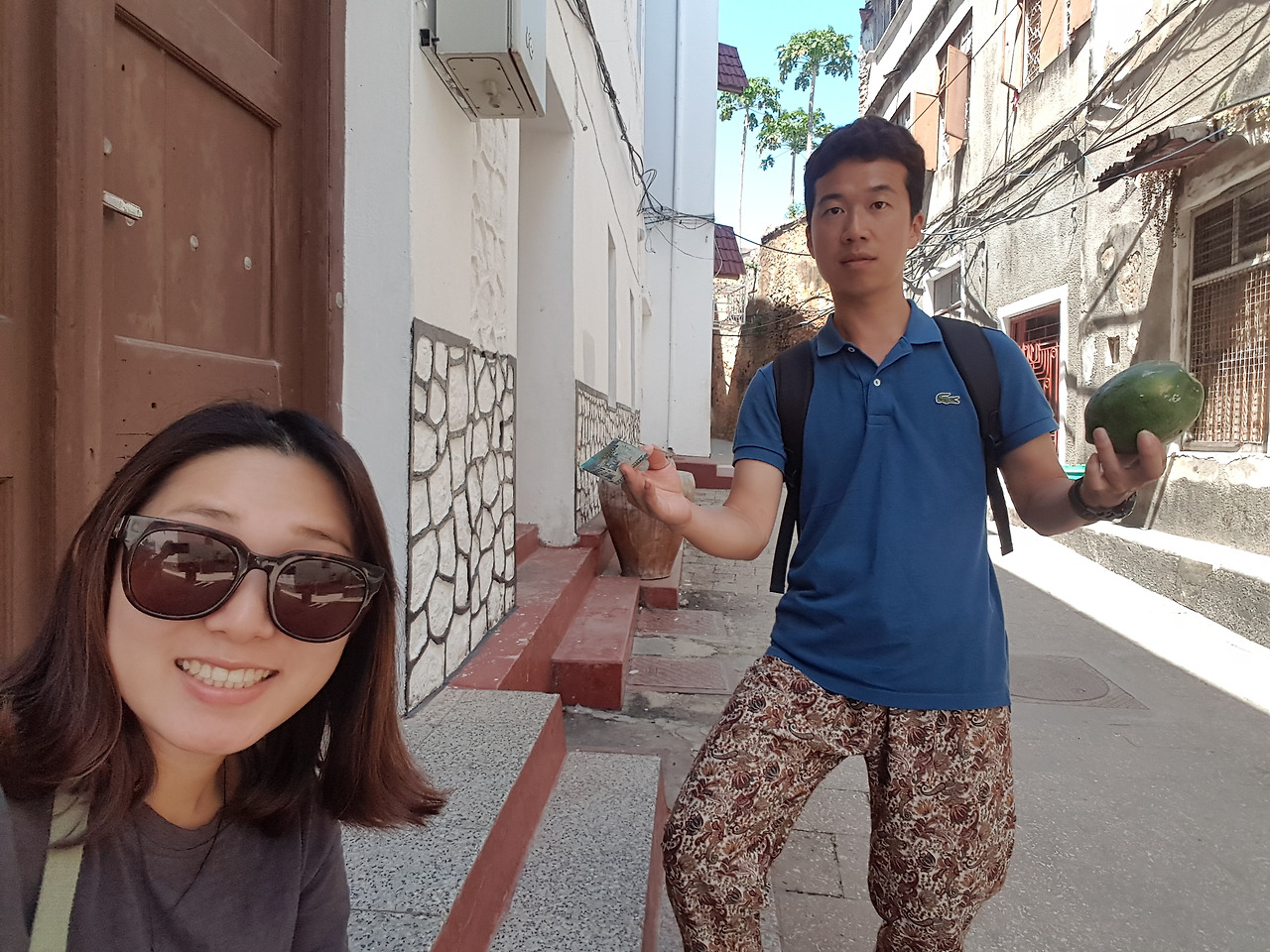 짐을 싸서 9시까지 리셉션으로 가니 미니 봉고가 와 있었다. 멤버들과 다 함께 봉고를 타고 스톤타운으로 가서 2시간의 자유시간을 즐긴 뒤 페리에 오르면 잔지바르도 이제 안녕이다. 다들 잔지바르를 떠난다는 것이 아쉬웠는지 근처 레스토랑에 가서 커피나 한잔 하잔다. 그리고는 어디서 먹을지 이미 정한 것 처럼 다 같이 골목 사이사이를 헤치며 걷기 시작했다. 나는 원래 걸음이 빠르지만 지금은 반강제로 걸음이 느린 아이가 되었다. 게다가 골목에서 파파야 장수를 만나서 하나 사려고 두리번 대다가 무리를 놓치고 말았다. 남편과 나는 차라리 잘 됐다고 생각하고 천천히 동네 구경을 하기로 했다.