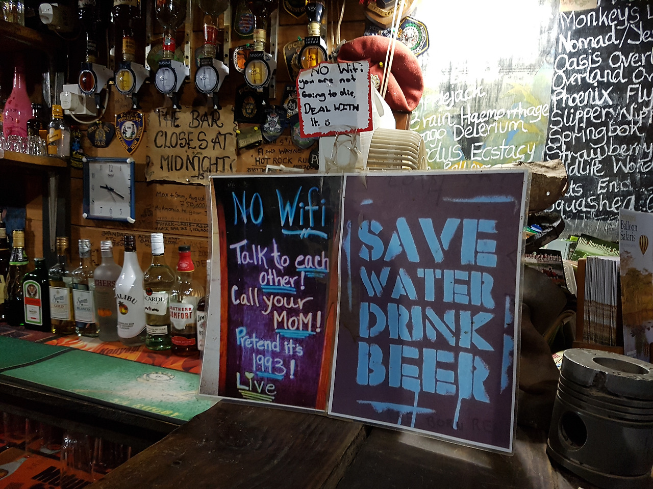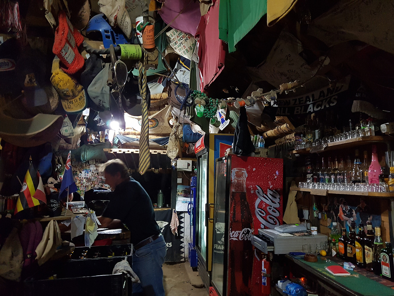 모두의 한 마디가 끝나고 남편과 나는 마지막 밤을 기념하기 위해 Bar에 갔다. 이곳은 인테리어가 참 특이한데 방문객의 소지품들이 주렁주렁 매달려 마치 서낭당 같은 느낌을 준다. 그리고 곳곳에 적혀 있는 문구가 아주 재미있다.