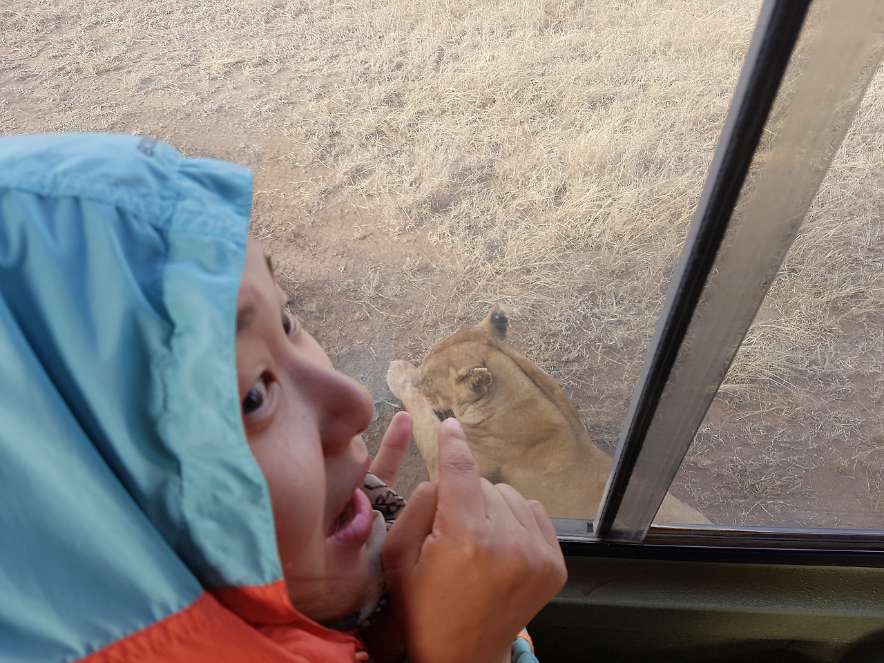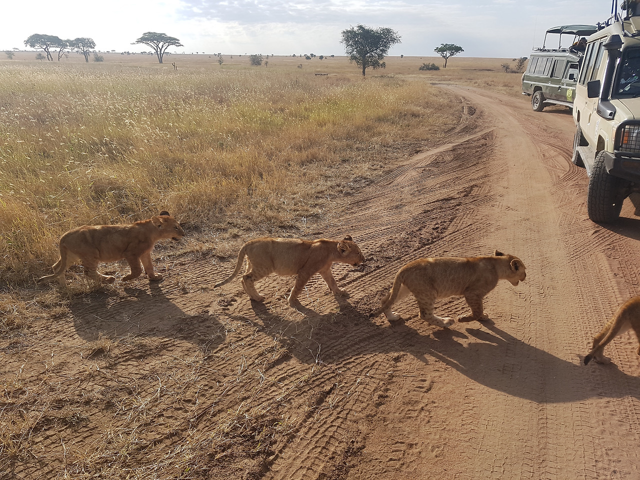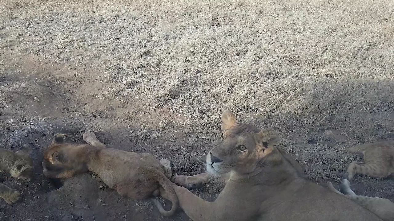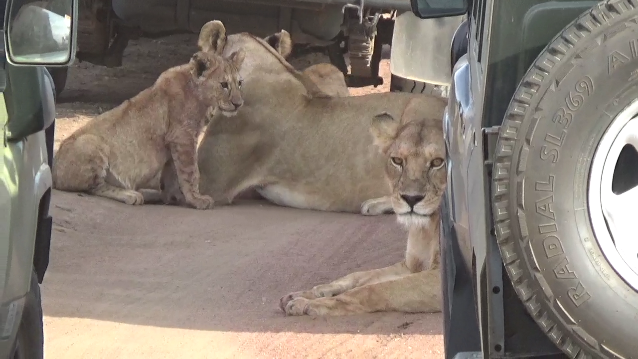 하지만 진짜 기적은 이제부터 시작이었다. 갑자기 어미 사자들이 일어나 다 함께 우리 트럭 옆으로 이사를 와버린 것이다. 내가 앉아있던 차창 바로 앞에 거대한 암사자가 자리를 잡고 눕자 귀여운 아기 사자들이 그르렁 소리를 내며 셋넷씩 어미를 찾아 몰려왔다. 방금 거하게 아침들을 먹었는지 하나 같이 배가 빵빵하다. 좀 전에 지나왔던 수사자의 식솔들인가 보다.