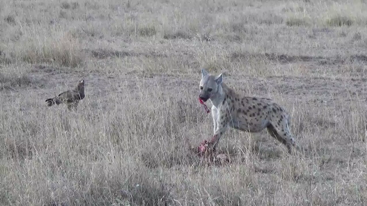 아무래도 아침이다 보니 식사 중인 동물들이 많다. 초원의 청소꾼 하이에나도 아침부터 걸걸하게 고기를 뜯는다. 보고 있으면 나도 모르게 '윽' 소리가 날 정도로 살벌한 녀석의 식사. 그런데 아까부터 하나도 안 반가운 손님 한 분이 하이에나 곁에서 알짱대신다. 번호표라도 뽑았는지 당당하게 먹이를 노리는 독수리의 눈빛. 그 눈빛에 엄청나게 경계를 하면서도 먹을 건 다 먹는 하이에나도 참 대단하다. 나 같으면 체할 듯.