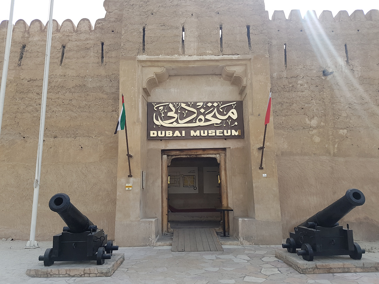 하지만 이것은 두바이의 여러 단면 중 하나에 불과했다. 우선 이곳의 역사를 보기 위해 찾아간 두바이 박물관. 박물관 건물은 1799년에 지어진 '알 파히디 요새 Al Fahidi Fort'로 과거 왕궁이나 감옥으로 쓰이다가 1970년에 와서 현재의 역할을 수행하게 되었다고 한다. 입장료는 3디르함(약 990원)으로 굉장히 저렴하다. 입구에 들어서니 사막 도시답게 모래로 채워진 요새 앞마당이 펼쳐졌다. 마당에는 실제로 사람을 실어 나르던 옛날 배들과 당시에 사용했던 대포들이 전시되어 있었다. 우리는 이글거리는 두바이의 태양을 참아내며 도르래가 달린 우물 앞에서 사진도 하나 찍고 안까지 살뜰하게 꾸며 놓은 아랍식 전통 가옥도 구경했다.