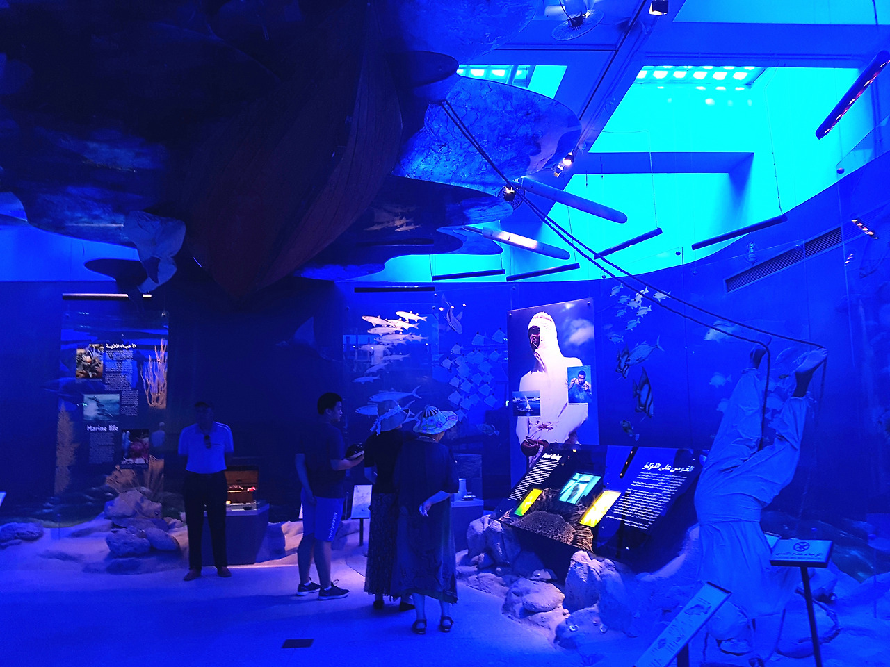즐거운 생활상 구경이 끝난 뒤 나타난 파란빛의 낯선 방. 뭘 표현해 놓은 것일까 위를 올려다봤더니 배 한 척이 천정에 둥둥 떠있다. 벽에 해초와 물고기들이 그려져 있는 걸 보니 바다 속이구나! 어쩜 아이디어도 좋다. 컨셉을 깨닫자마자 나는 마치 아가미라도 생긴 것처럼 바닷속을 마음껏 여행할 수 있게 되었다. 또 한 가지 재미있는 사실은 이곳에도 우리나라 해녀처럼 물질을 하는 해남들이 존재한다는 사실이다. 그들은 물속에서 해산물도 잡고 진주도 찾는 일을 하는데 빨래집게 같은 것으로 코를 집은 모습이 예사롭지가 않다. 전문가 스멜.