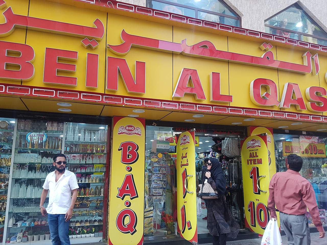 가게의 이름은 'BEIN AL QASRAIN'. 총 3층으로 이루어진 이 가게에는 각종 기념품부터 화장품, 옷, 신발, 생활용품, 장난감 등을 팔고 있었는데, 가격이 장난 아니다. 전품목 10~20디르함(약 3,300원~6,600원) 파격 정찰제!