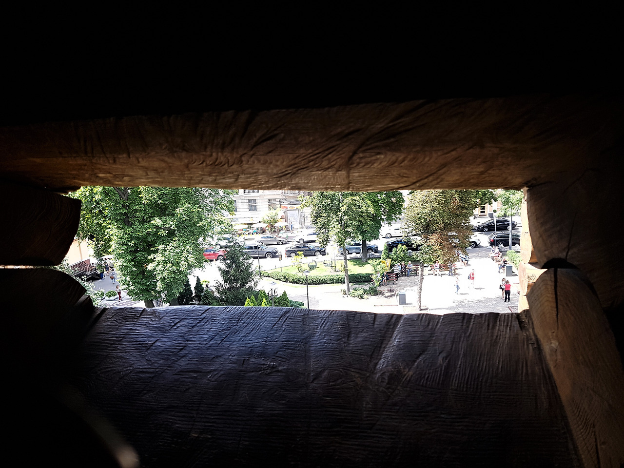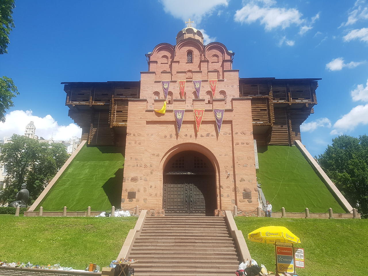 종탑에서 내려와 찾아간 곳은 그 이름도 찬란한 '황금 문 Golden gate'. 키예프 대공국 시절 사용하던 성문인데 현재 성벽은 사라지고 문만 남아있다. 입장료를 내고 안으로 들어가면 성문의 꼭대기까지 올라갈 수 있는데, 중간중간 뚫려있는 감시용 구멍으로 밖을 내다보는 재미가 쏠쏠하다. 밖에 있는 사람들은 누가 자신을 보고 있는지 절대 눈치챌 수 없는 구조로 만들어졌다는 것이 놀라울 따름이다. 또 하나 재미있는 사실은 이 성문 꼭대기에 작은 성당이 있다는 것이다. 도시로 들어가는 입구를 신과 함께 지키고 있다고 믿고 싶었던 걸까. 특별한 설명이 없어 정확한 이유는 모르겠지만 그 덕에 또 한번 이런저런 상상을 해볼 수 있는 기회가 생겨 반갑다.