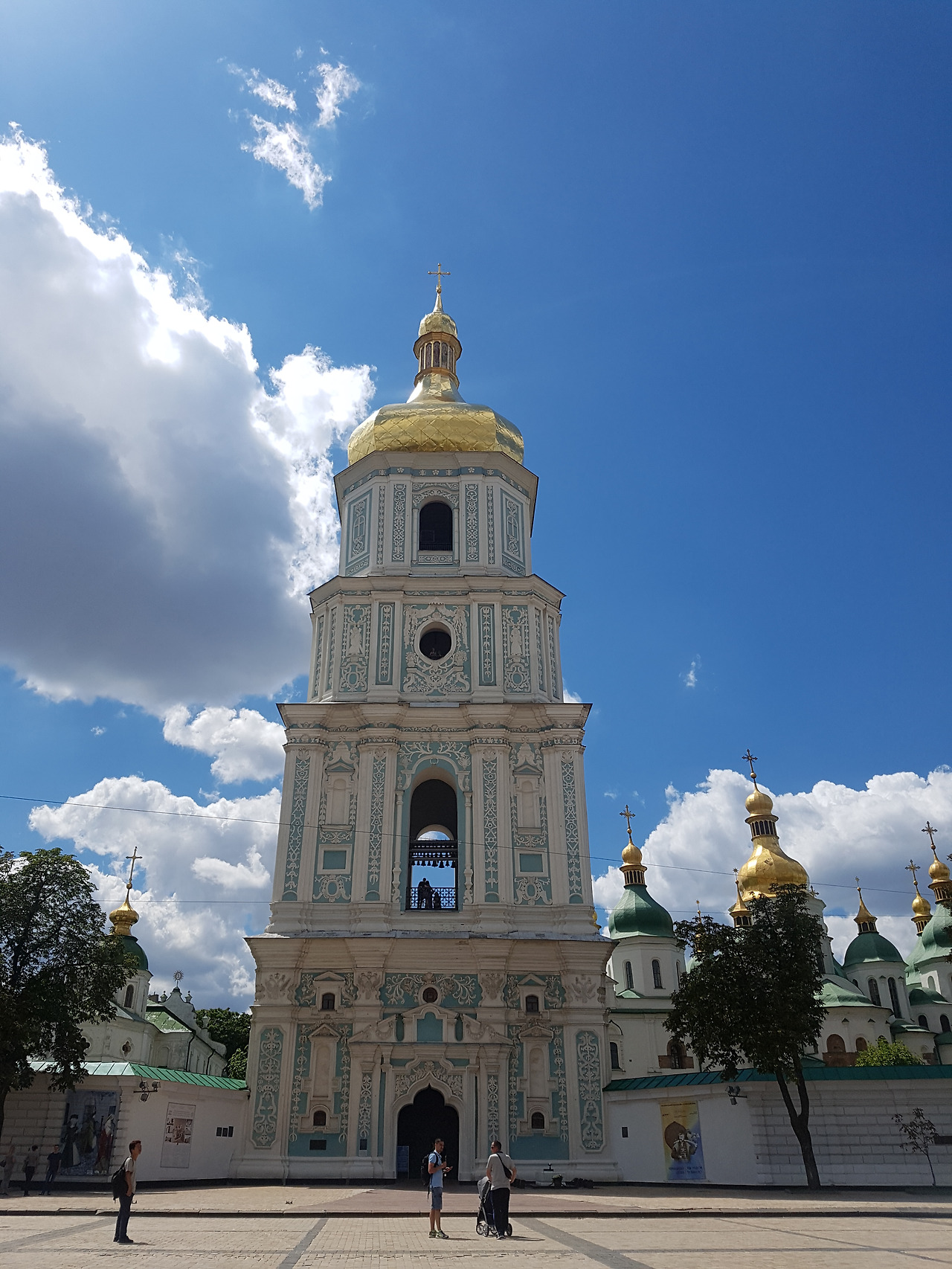 결론은 우크라이나에 있는 성당들은 보통 '동방정교'의 예배당이라는 것이다. 이걸 설명하려고 로마시대까지 거슬러 올라갔다 왔더니 힘들다;; 무튼 이곳에서는 국민의 75%가 '동방정교'를 믿기 때문에 어딜 가나 성당이 참 많다. 우리는 키예프의 잘 가꾸어진 거리들을 걷고 또 걸으며 서유럽과는 또 다른 이곳 성당의 매력들을 하나씩 살펴보았다. 광장을 끼고 서있는 성소피아 대성당에는 커다란 종탑도 있었는데, 그곳에 올라가 키예프 시내를 시원하게 내려다볼 수 있었다. 평일 오전이라 거리는 한산했고, 저 멀리 성 미하일 황금돔 수도원이 반짝였다. 크림색 건물 위에 무신경하게 올려진 녹색 지붕 그리고 설명이 필요 없는 파란 하늘은 바쁘게 흘러가는 삶의 시간을 잊게 해주었다. 그렇게 잠시 과거도 현재도 아닌 오묘한 시간 속에 놓인 채 오늘의 낯섦을 마음껏 즐길 수 있다는 사실이 참 감사했다.
