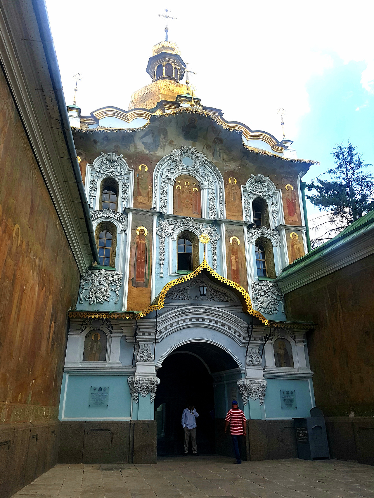하루 종일 도심을 바쁘게 누볐지만 키예프의 볼거리는 아직도 한참이나 남았다. 그래서 하루를 더 투자해 '페체르스크 수도원 Pechersk Lavra'을 방문했다. '페체르스크 수도원 Pechersk Lavra'은 '동굴 수도원'이라고도 불리는데, 옛날 수도사들이 이 수도원 안에 위치한 동굴에서 수도를 했기 때문이다. 여러 성인들로 장식되어 있는 수도원 문을 지나 안으로 들어서니 드넓은 부지가 나타났다. 처음에는 소박한 성당들이 보이는가 싶더니 잠시 후 번쩍번쩍한 황금색 돔을 자랑하는 화려한 성당들이 나타나기 시작했다.