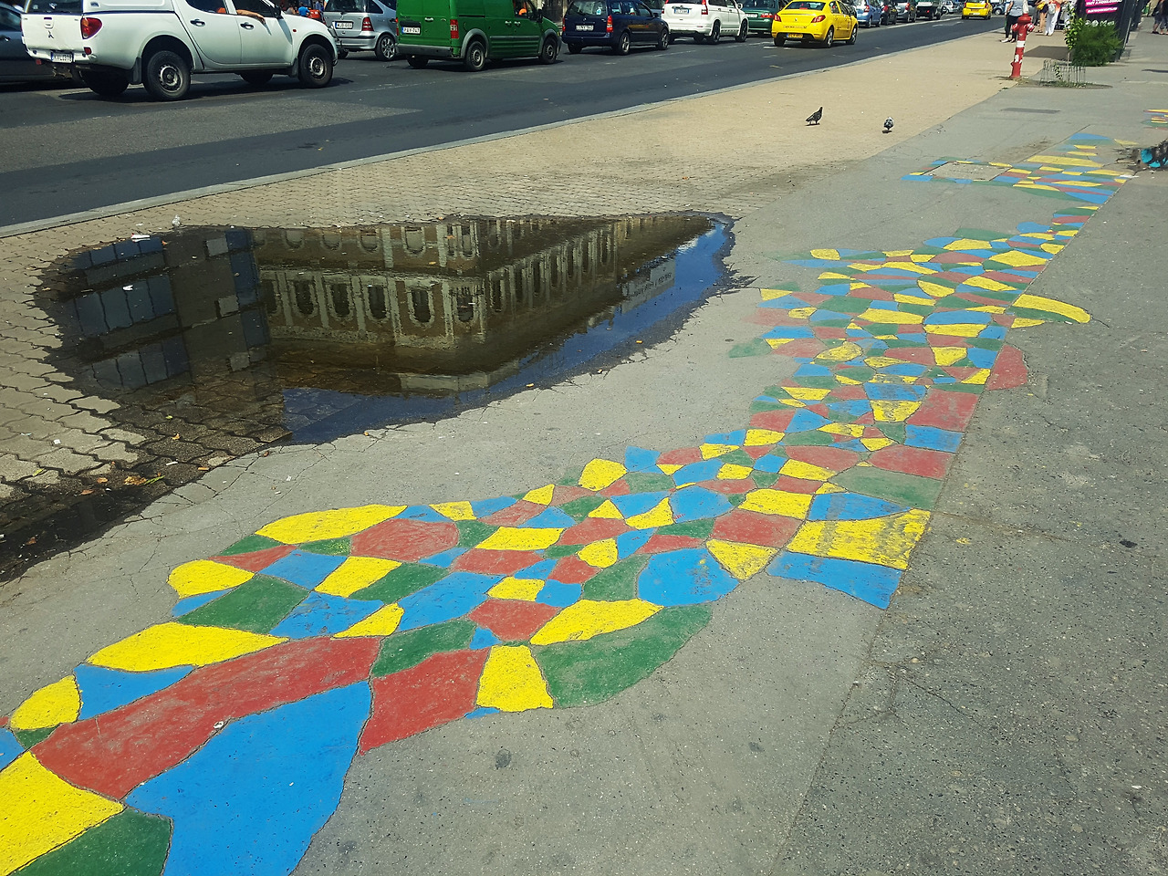 약속 시간까지 여유가 있어 동네 백화점에도 들어가 보고 길거리에서 아이스크림도 사 먹었다. 투박하게 포장이 깨진 길 조각에 알록달록 색을 칠해 놓은 센스를 보고 감탄도 하고, 또 하늘을 올려다보다가 그 믿을 수 없는 푸르름에 잠시 찡함을 느끼다 보면 시간이 물 흐르듯 흘러가 버린다.