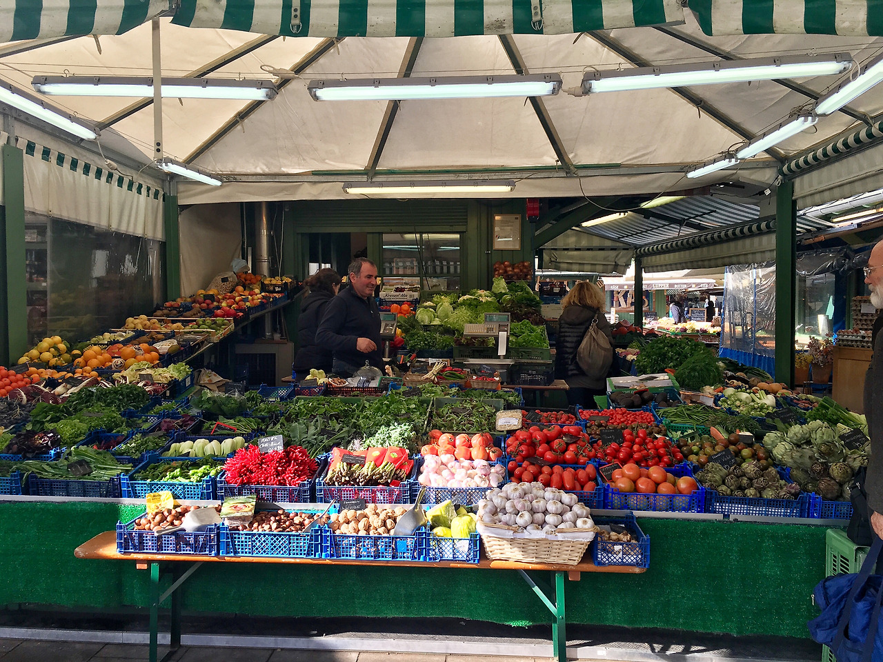 야외에서 채소, 와인, 치즈, 빵을 파는 가게들도 많았다