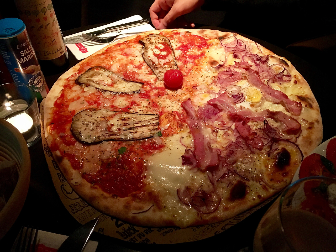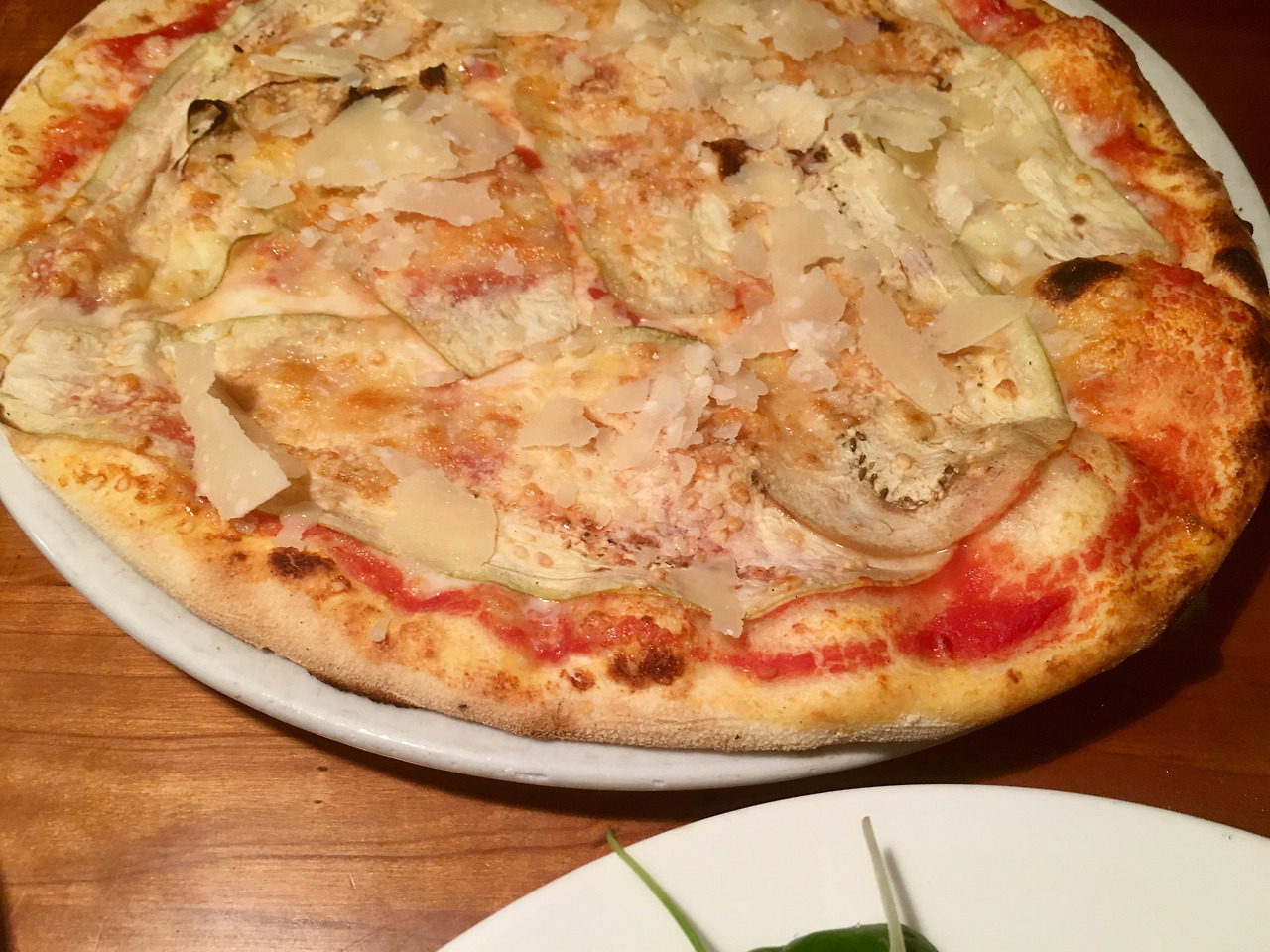 엄청 큰 가지가 올라간 피자 Parmigiana. 개인적으로 가지를 좋아서 너무 좋았다