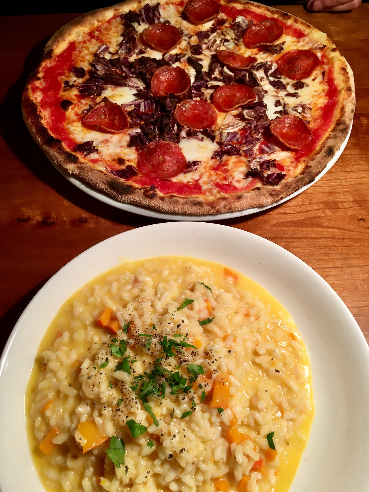 2인 이서 리조또+피자 혹은 샐러드+피자를 먹고 마무리로 디저트를 꼭 먹는다.