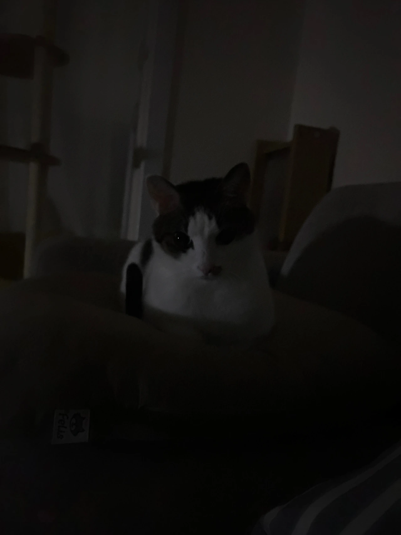 어둡고 조용한 거실에서 고양이가 하는 일은