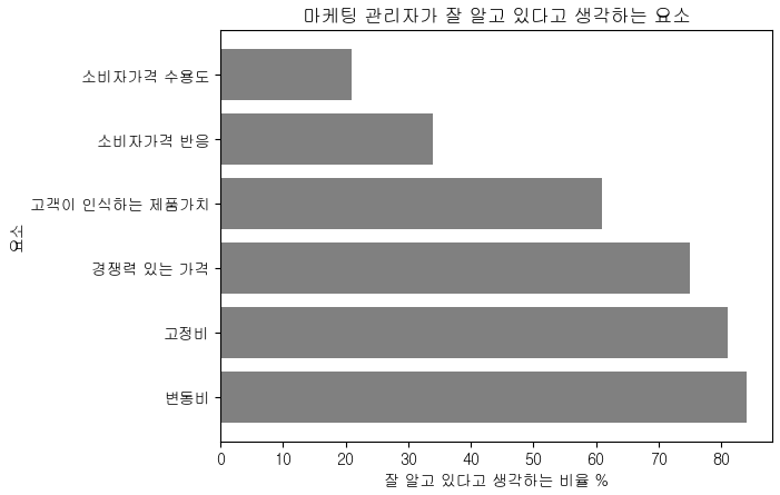 마케팅 관리자의 지식 (맥킨지 연구)마케팅 관리자들은 변동비 관리에 가장 집중하고 있었습니다. 두 번째는 고정비이고, 세 번째는 경쟁력 있는 가격이었습니다. 변동비와 고정비는 원가절감 분야입니다. 기업이 이미 원가 절감을 위해 쥐어짜고 있다면 개선이 어렵고 개선하더라도 이익률은 크게 올라가지 않습니다. 맥킨지는 체계적인 가격결정으로 이익을 개선할 기회가 많다고 제안하였습니다.