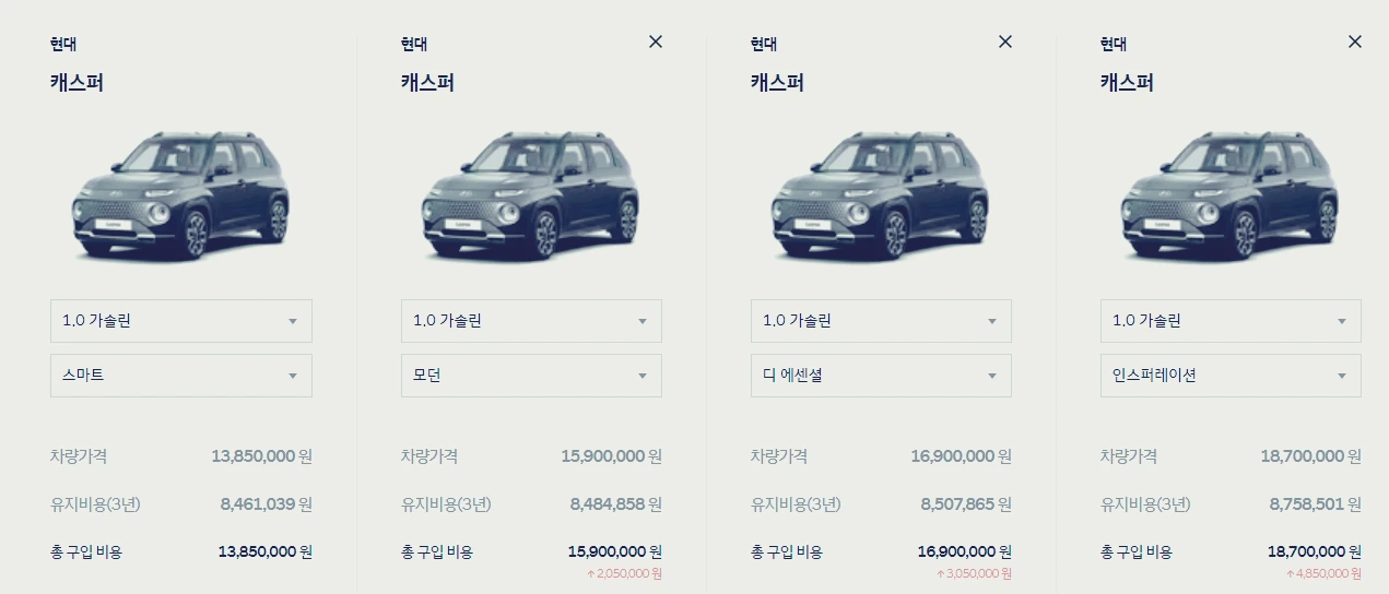 현대차는 캐스퍼를 출시하여 소형 SUV시장에서 돌풍을 일으켰습니다. 현대차는 고객의 니즈에 따라 4단계로 가치제안을 하고 있습니다. 가장 많은 편의사항을 추가한 '익스퍼레이션'은 기본형인 '스마트'보다 가격이 35% 높습니다. 자동차는 높은 예산을 갖고 구매를 하기 때문에 단계별 가격 상승 차이는 비교적 적어 보입니다. 처음에는 예산에 맞춰 기본형을 보던 사람도 약간의 돈을 추가하여 한단계 업그레이드된 제품을 사게 되는 경우가 많습니다. 상향판매(Upselling)는 같은 제품이지만 업그레이드와 추가기능으로 더 많은 가치를 구매하도록 고객을 초대하는 판매기술입니다. 판매자는 더 많은 편의기능으로 언제든지 한 단계 더 높은 가치제안을 시도할 수 있습니다.