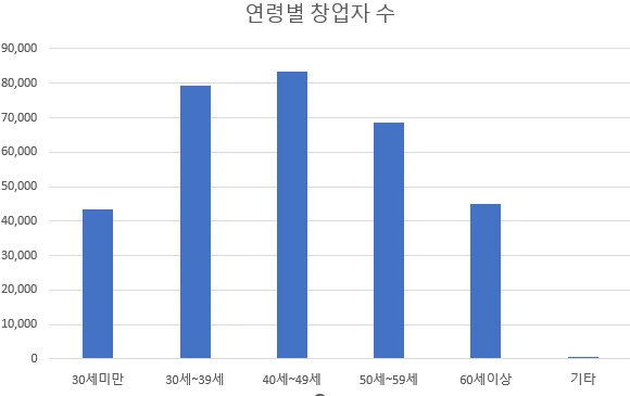 위 그림은 우리나라에서 2023년 5~7월 세 달간 창업한 사람들의 연령 통계이다. 우리나라에서도 창업은 40대의 중장년층이 다수인 것을 확인할 수 있다.