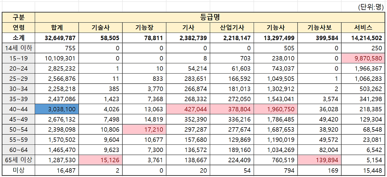 공인중개사는 기술자격이 아니기 때문에 이 통계에 포함되지 않았지만, 가장 많이 취득하는 자격증이다. 공인중개사도 40대가 가장 많이 응시하고 가장 많이 합격한다. 40대는 미래에 대한 불안이 높기 때문에 학습에 적극적이라고 짐작할 수 있다.