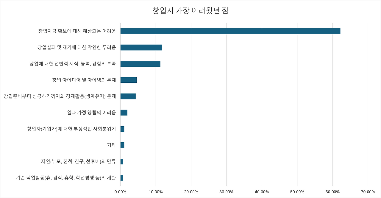 창업자들이 가장 어려운 점으로 인식하는 것은