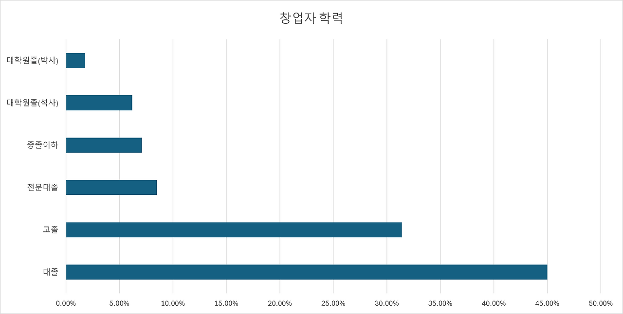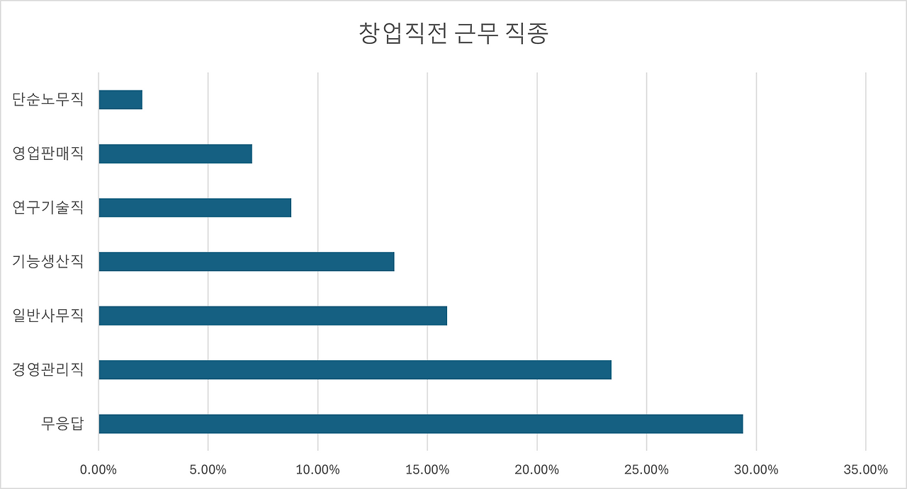 가 가장 많다. (이 설문조사는 최초창업자만을 대상으로 한 것이 아니다.)