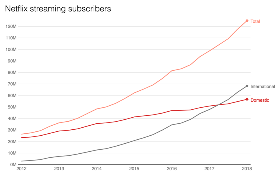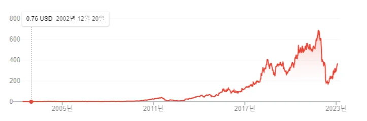 넷플릭스의 예를 보겠습니다. 넥플릭스는 2002년 상장된 이래로 2023년 2월 까지 주가가 29,774% 급등하였습니다. 넷플릭스는 미디어 대여 시장에서 혁신을 이루었습니다. 시장파괴자였습니다. 넷플릭스 이전에는 대여점에 가서 비디오를 빌려와서 보고 반납하였지만, 넷플릭스는 고개들의 집까지 배달을 하였습니다. 넷플릭스의 가장 큰 혁신은 구독제 서비스를 시작함으로써 비즈니스 모델을 바꾼 것입니다. 2000년 이후에 많은 회사들이 이 모델을 선택하였습니다. 그 많던 비디오 대여점과 DVD 대여점 같은 물리적 상점이 사라졌습니다. 지금은 구독제 비즈니스모델이 더 다양하게 발전하고 있습니다.
