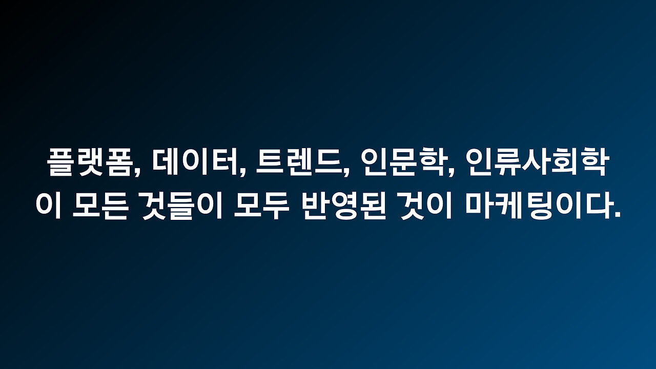 마케터 업은 연속성, 지속성, 진정성을 요하는 '직군'입니다. 아마도 이 글을 보시는 분들에게는 매우 어려운 글이기도 하겠지만, 점차 디지털 마케터가 기술 - 데이터 - 인문학 - 트렌드 - 소비자의 심리학 등의 복합적인 다변화 업무로 가고 있는 환경에서 위의 4가지 조건은 모두에게 꼭 필요한, 특히 마케터로 성장하고 싶은 분들에게는 한번쯤 귀담아 보셨으면 하는 '개인적인 가치관'이며, 바람 이기도 합니다.