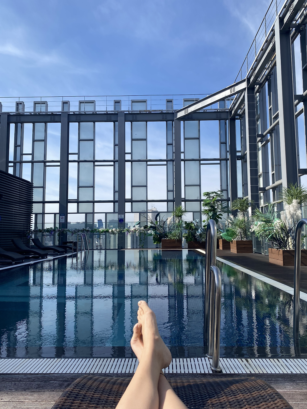 쌍쌍이, 또는 가족이 호텔 곳곳에 빼곡한 가운데 홀로 와인도 한 잔 하고 다음날 루프톱 수영장에도 올라갔다. 가는데 마다 보이는 그들한테 다행히 그다지 부러운 마음은 들지 않았다.
